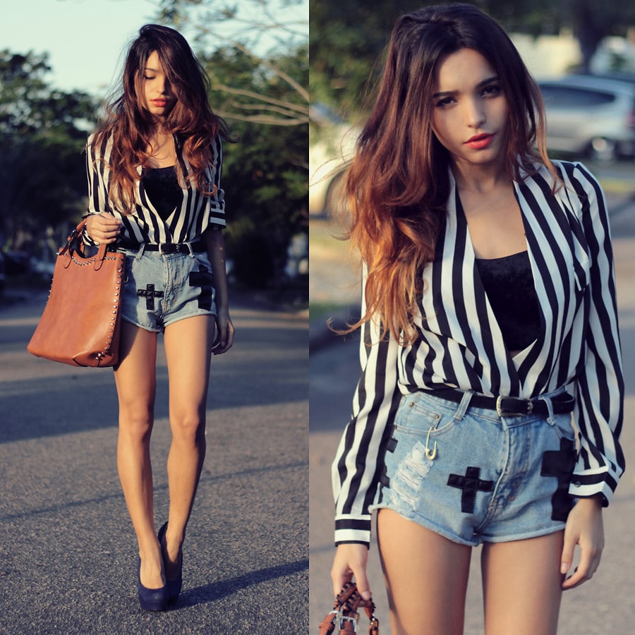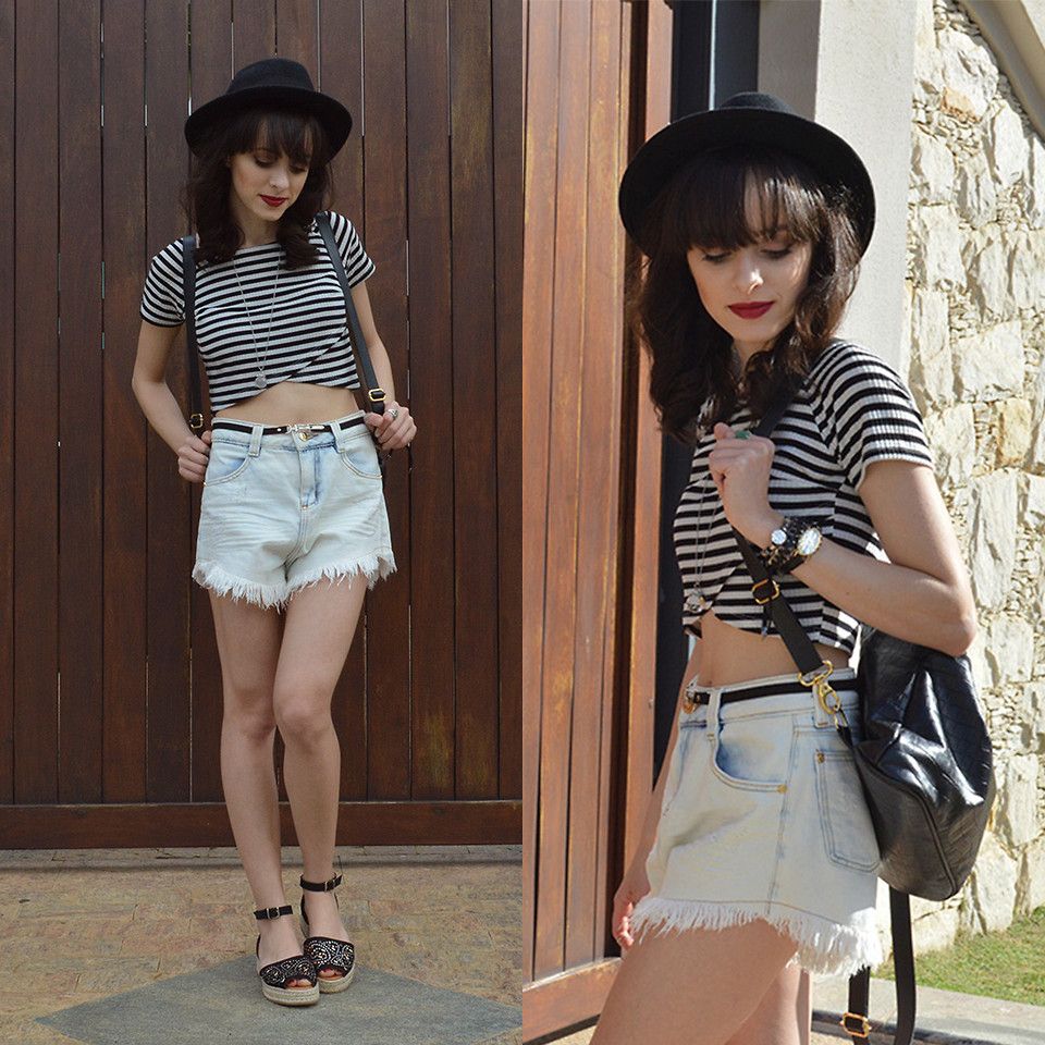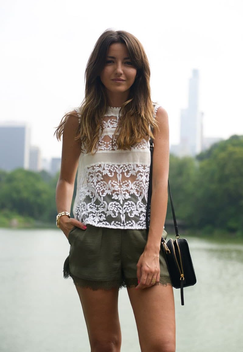 A monochrome look will help you create shorts and your top in a single color. For an interesting look, you can choose shorts in a checkered or striped print. If you want a contrast of colors, then you can choose shorts in dark color, and your top in light and vice versa.