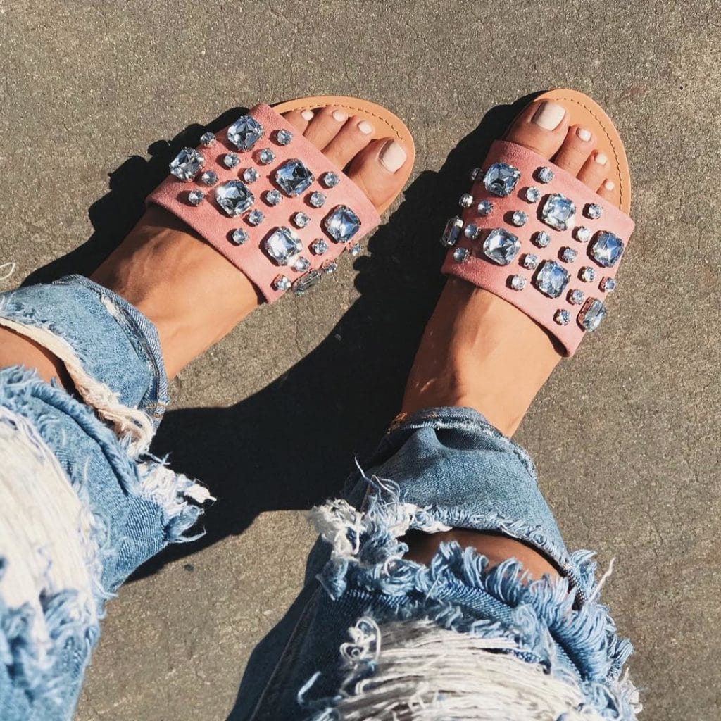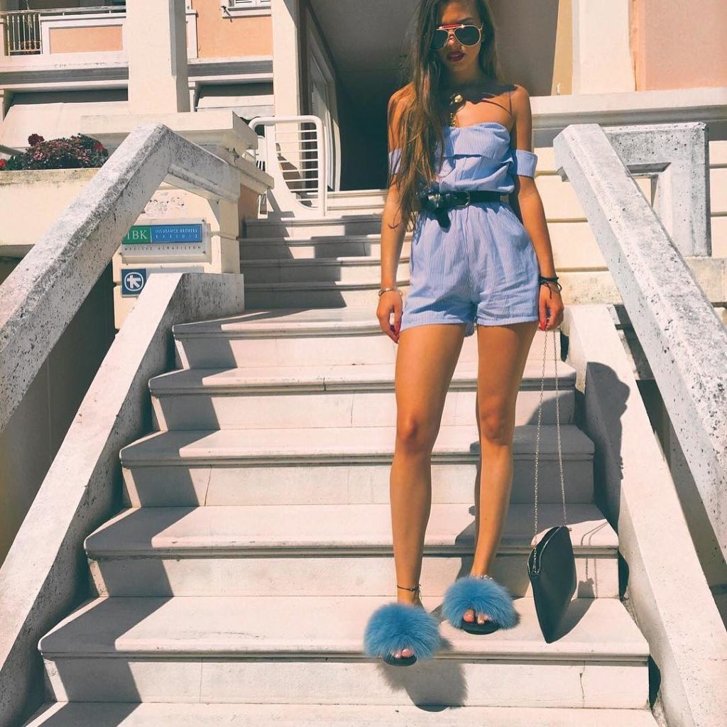 Recently, flip flops on low speed with fur have become very popular. They became the trend of the summer season, helping girls to create amazing images with the help of them.