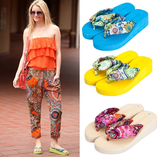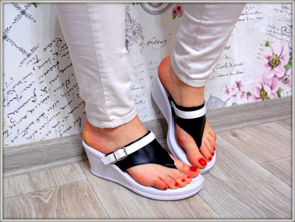 Flip flops on the platform can be chosen by those girls who like comfortable shoes, but still accustomed to a certain height. In this case, flip flops on the platform at your service.