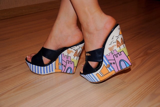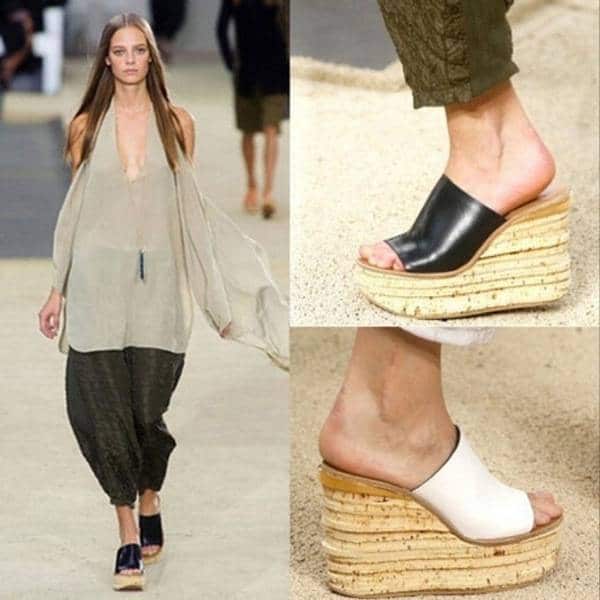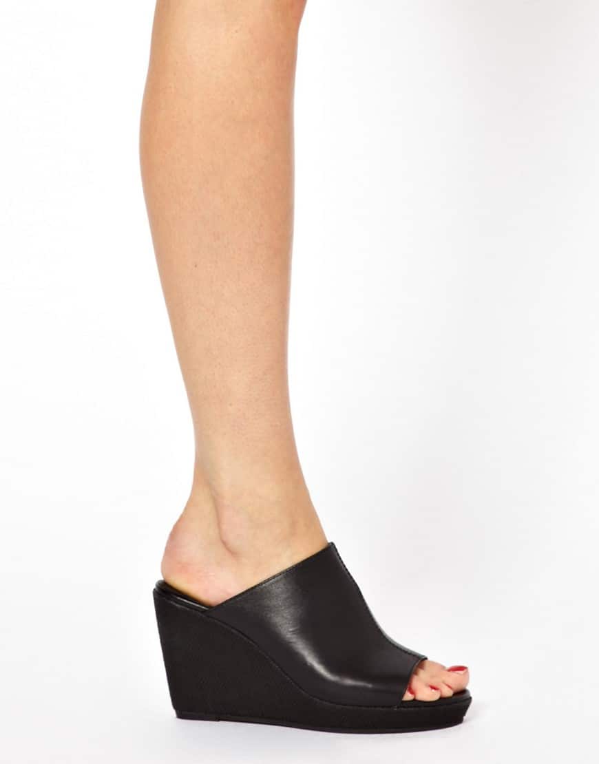 Mules are shoes without a backdrop. They have a small heel and a pointed toe, but there are some models with a blunt, rounded toe. Mules are very suitable for girls with high stature, because it looks like shoes with a small heel.