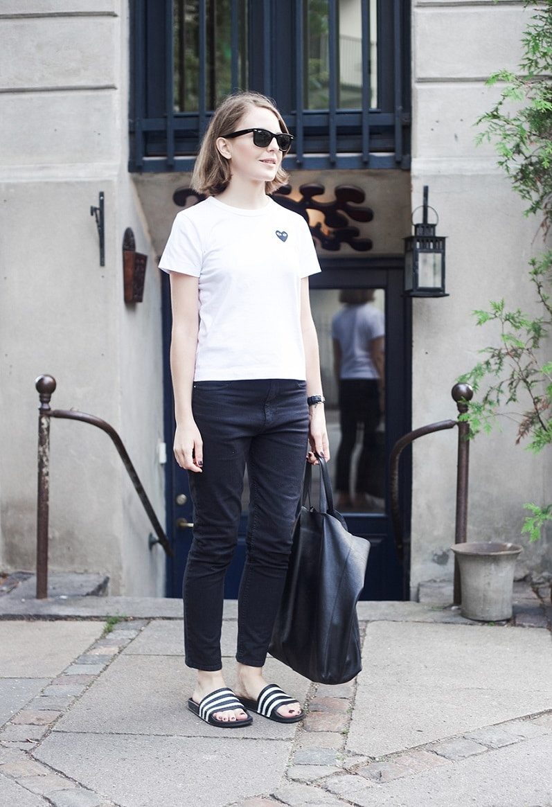 Clogs work well with tight jeans or trousers. Also, such flip flops can be combined with a dress of a wide cut or more classic models. By the way, instead of a dress, you can always choose a long dress-shirt.