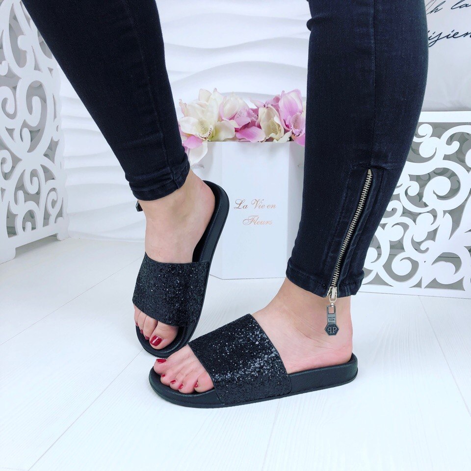 Flip flops can be on low speed, on a platform, wedge heels or even heels. There are also models with decor: rhinestones, fur, dressings, bows and large beads. Slaps can be decorated with sparkles, and they are made of different materials.