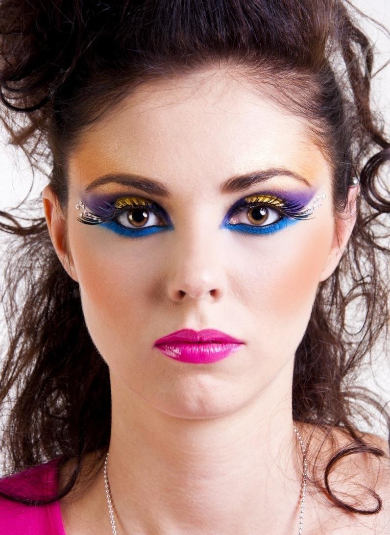 Makeup in the 80s, this is an extravaganza of colors. Girls absolutely did not shy away at that time, mixing bright blue and yellow shadows among themselves, directly with them, drawing eyeliner on the lower or upper eyelid. And the more bright shadows there were, the more beautiful it was considered.