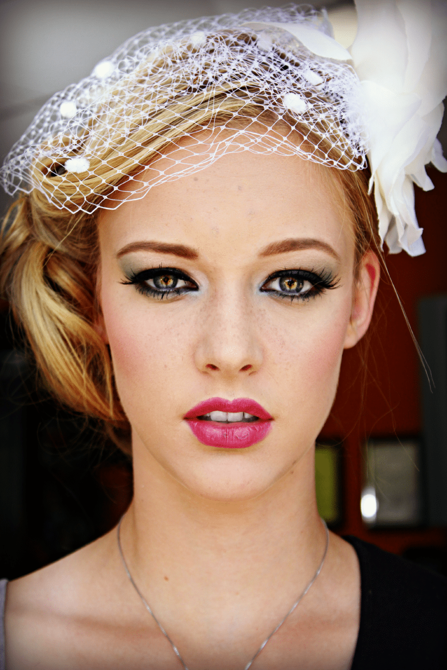 Eyes were highlighted with a narrow eyeliner, but eyebrows were sometimes plucked to a tiny strip, which was very fashionable at that time.