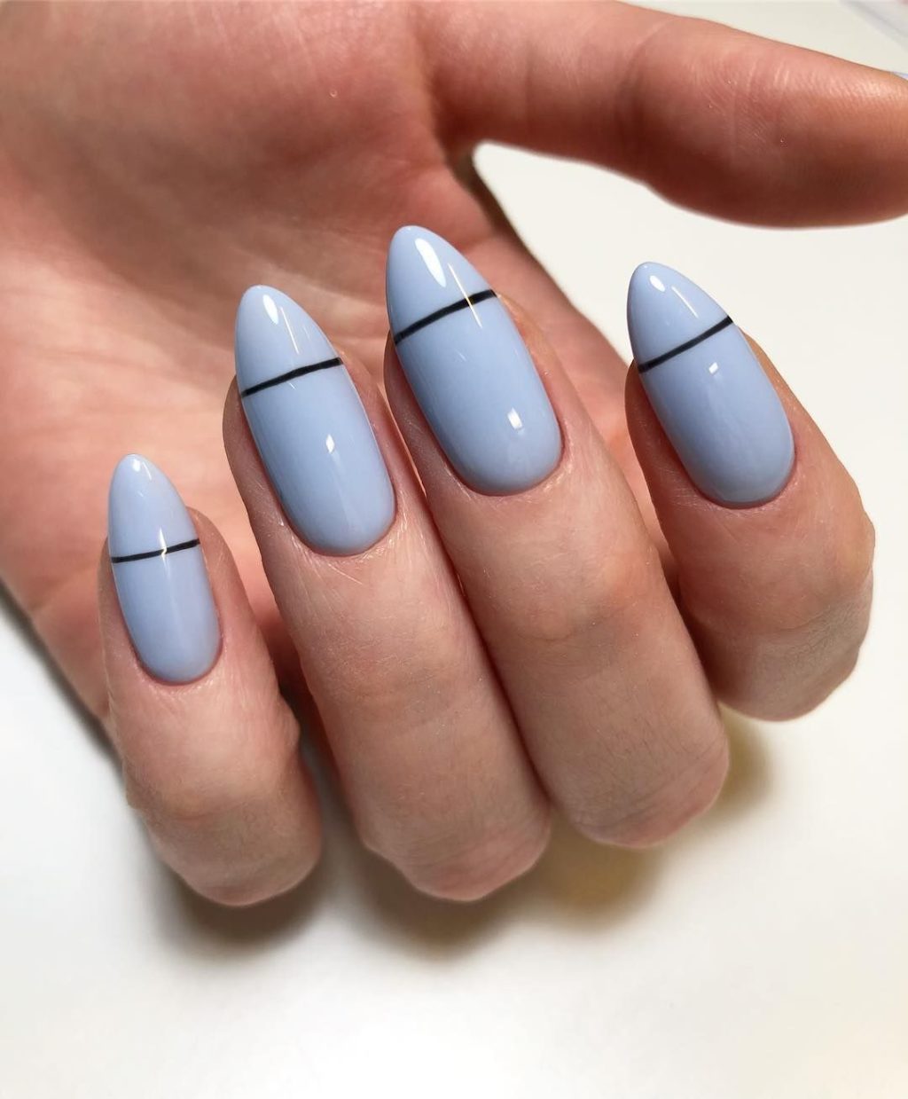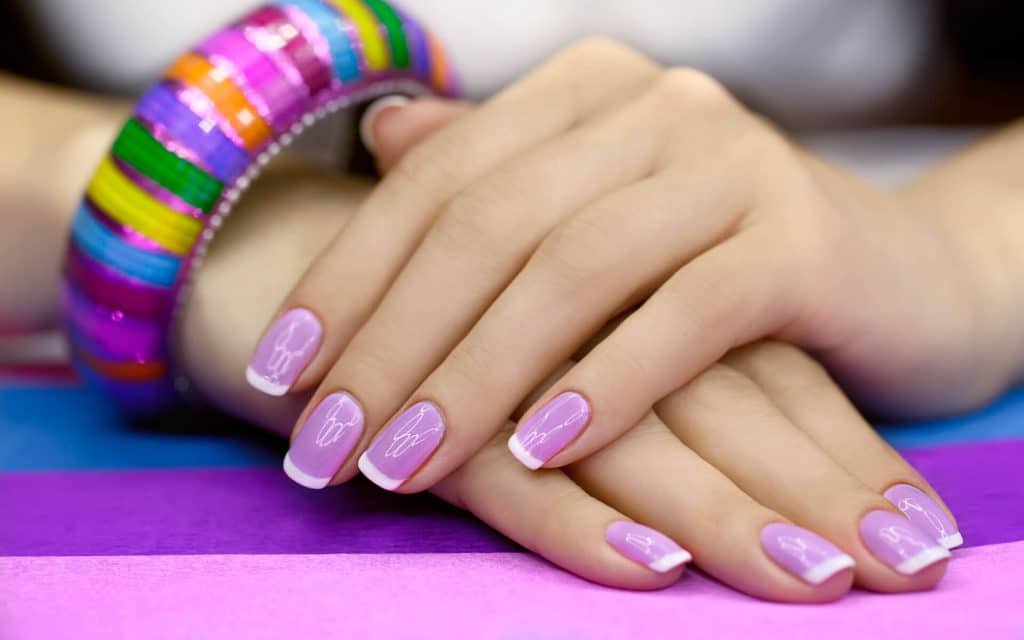 bed colors are used. Such as light shades of blue pink beige. It looks great on short and long nails, making them more elegant.
