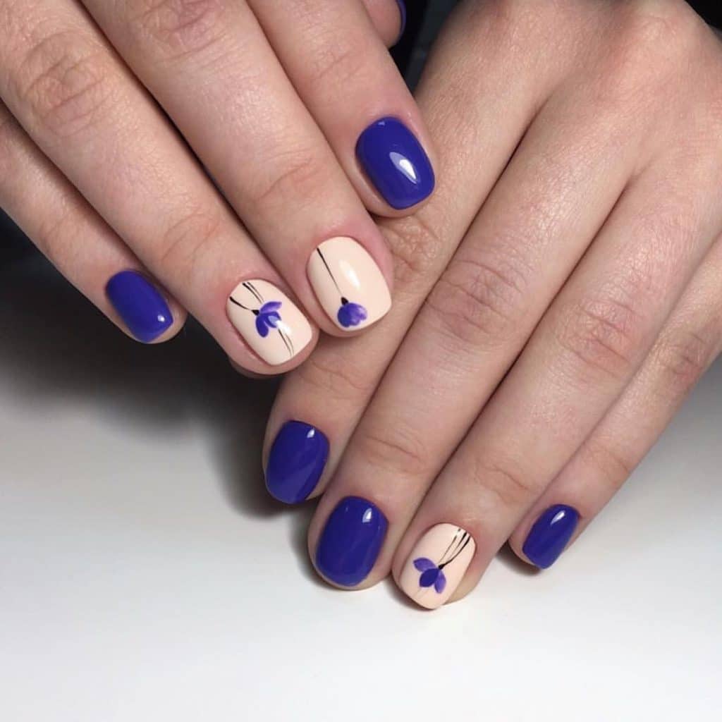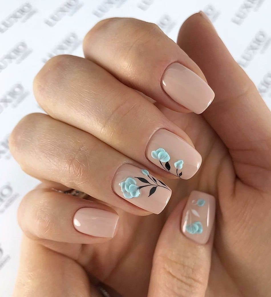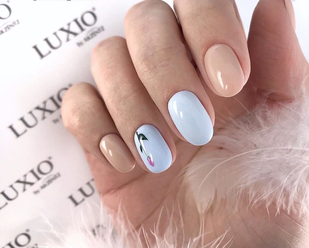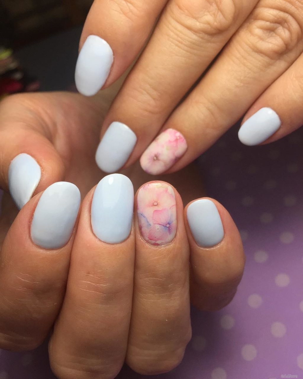 This design combines calmer tones and floral patterns. This makes such a manicure gentle and sophisticated.