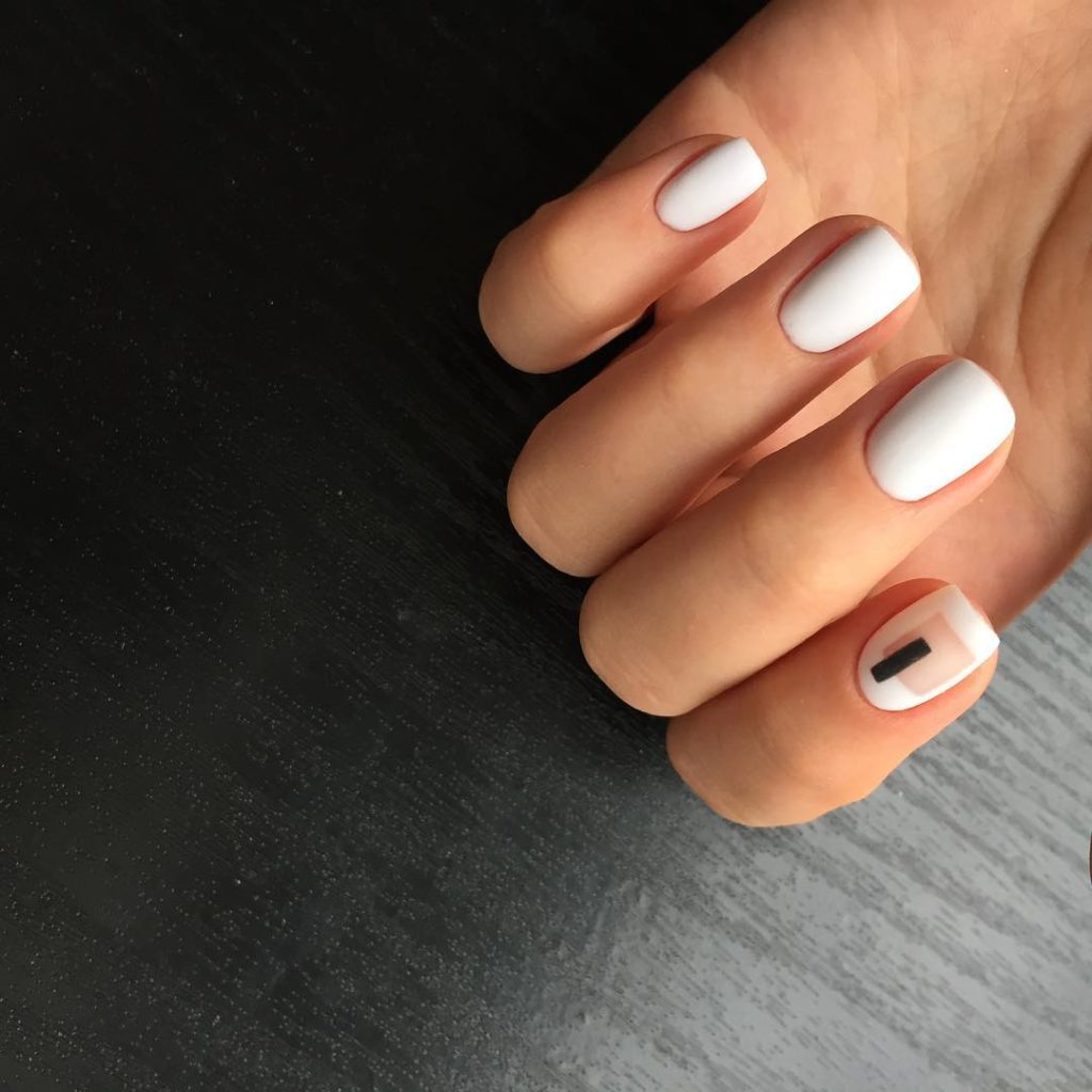 Minimalist manicure is multifaceted with its shades, such as white, black beige and transparent.