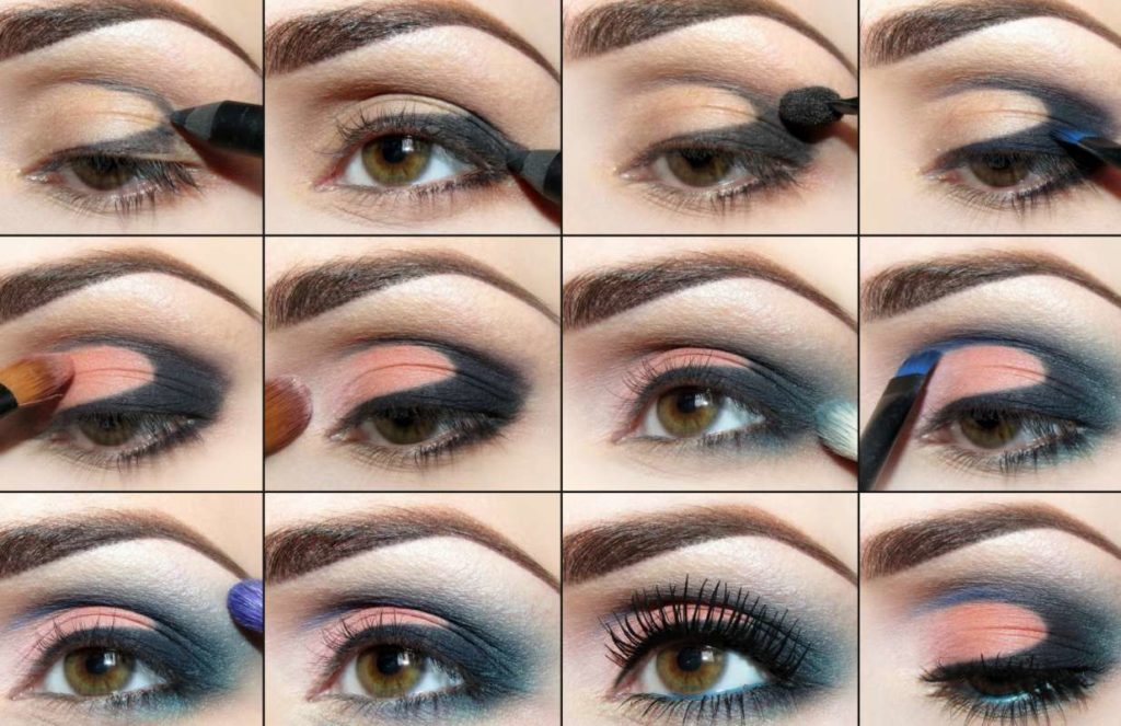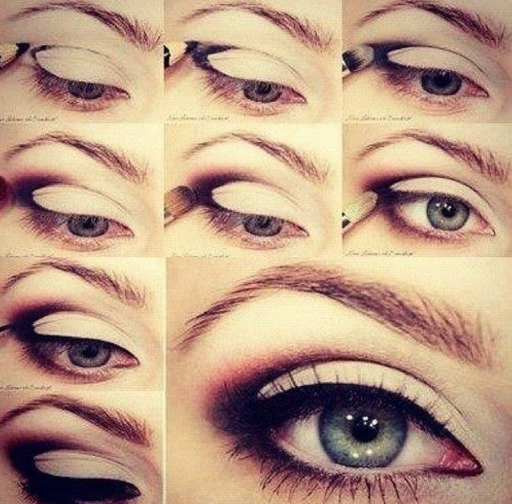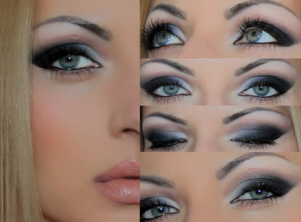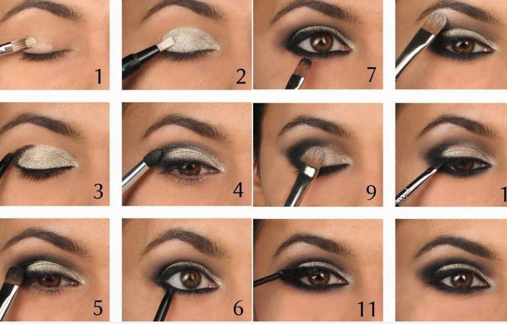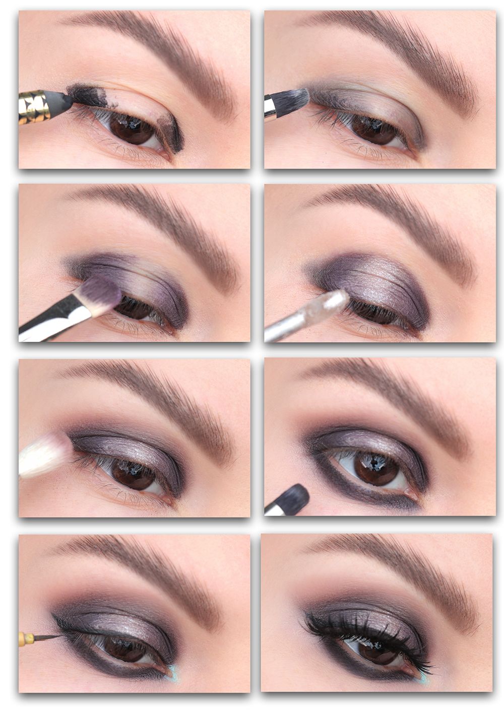 Apply light shadows at the inner corner of the eye. Then take a slightly darker shade and paint over it with a movable eyelid and a skladok. And in the upper, outer corner of the eye, draw dark shadows and blend them a little. This will create a smoky effect.