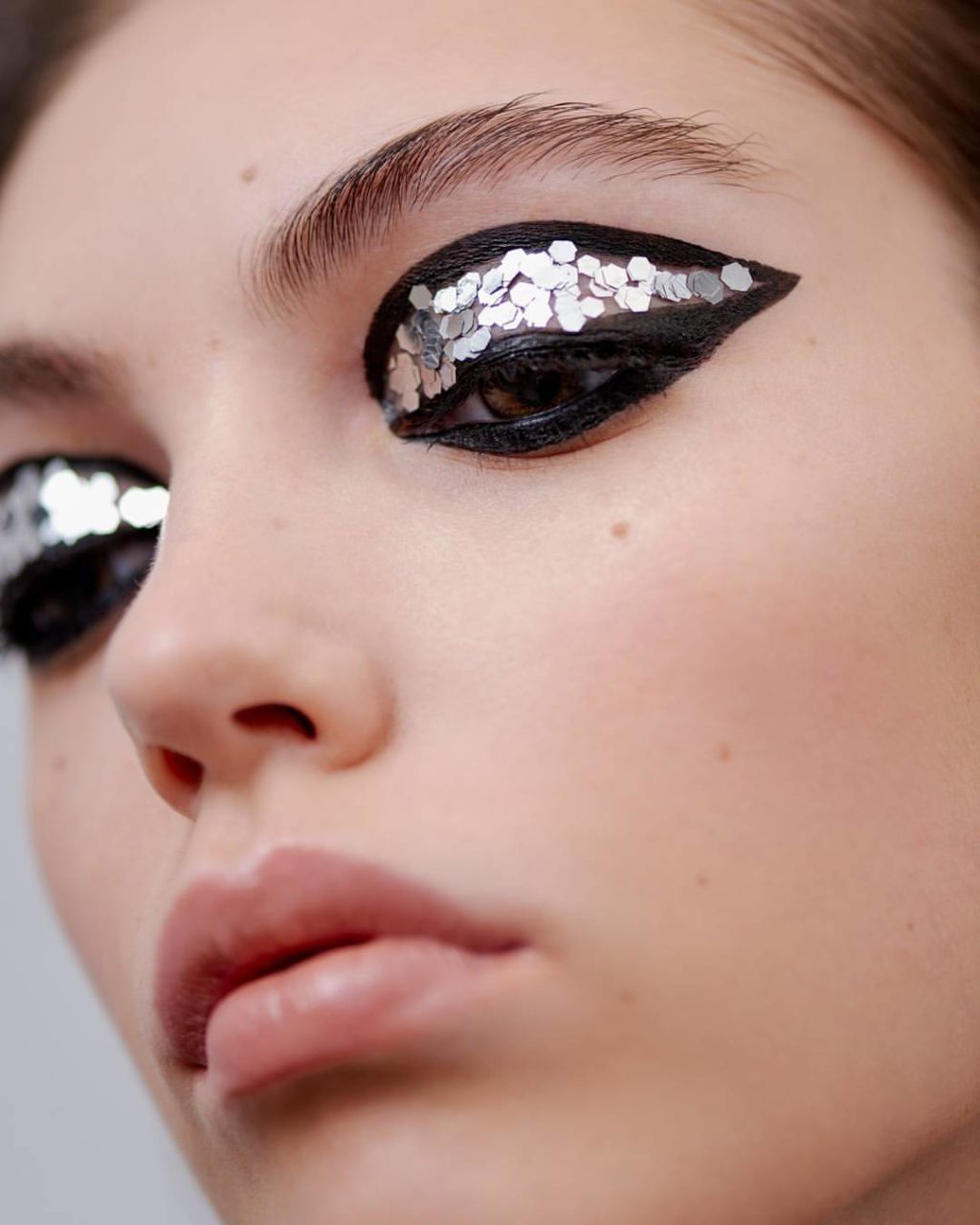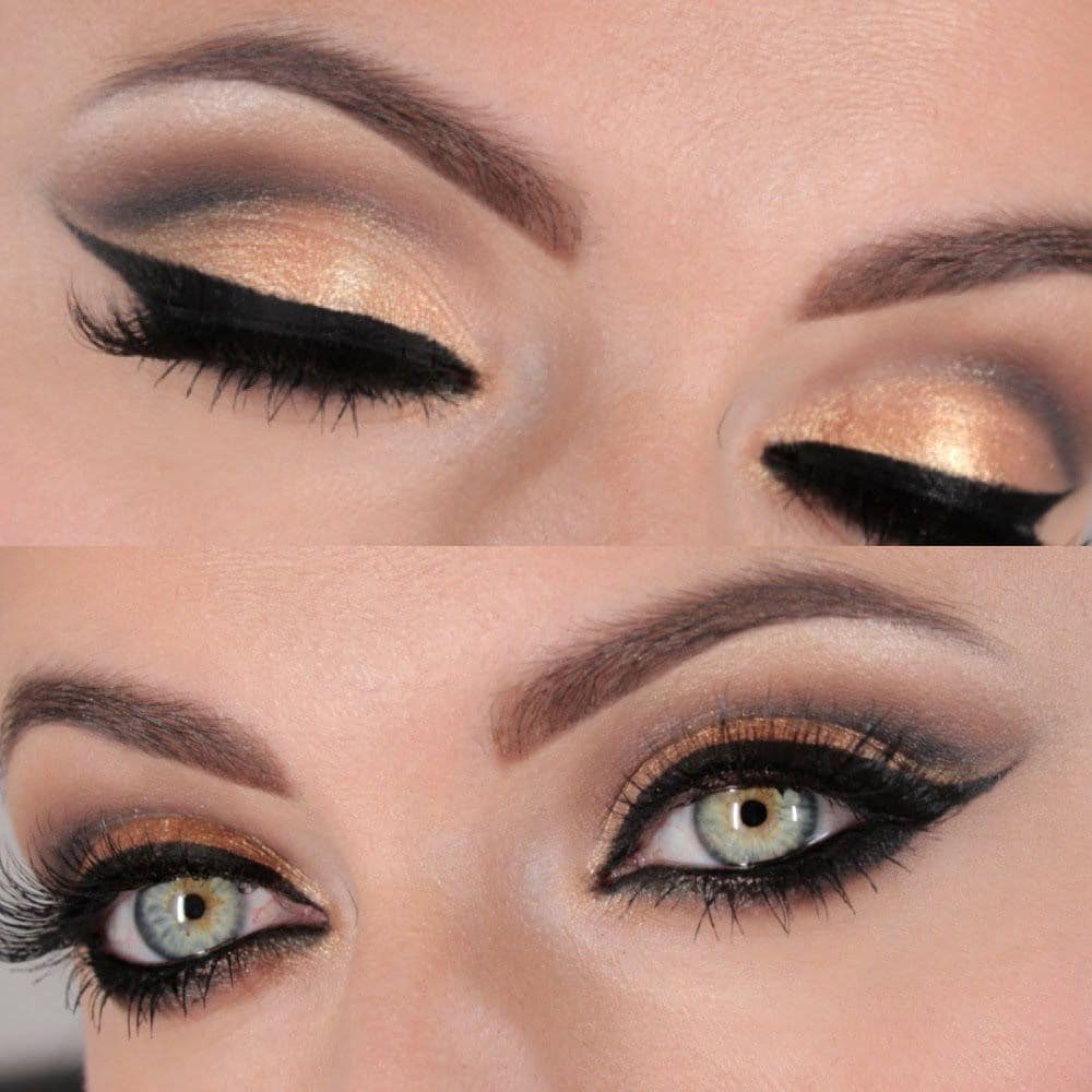 You can always add shadows in such make-up and tint mascara very thickly with mascara. Also an interesting solution would be to draw a gold or silver on top of the black arrow. This will give your eyes even more expressiveness.