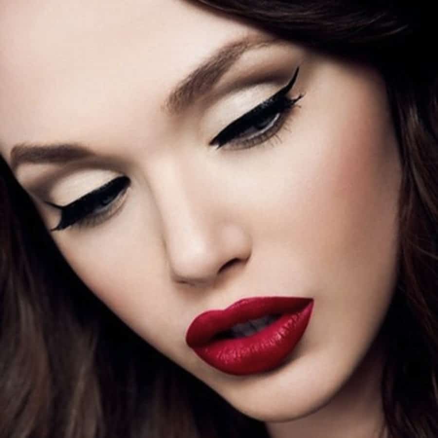 Choose a lipstick a little darker than your lips. A slightly brilliant liquid shine is allowed. But pick blush in the color of lipstick, barely visible lines highlighting the cheekbones.