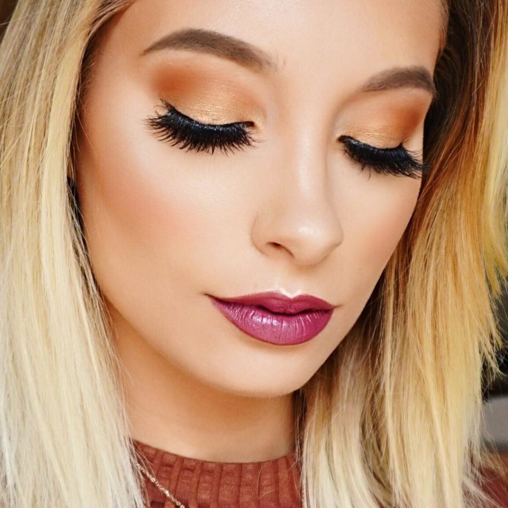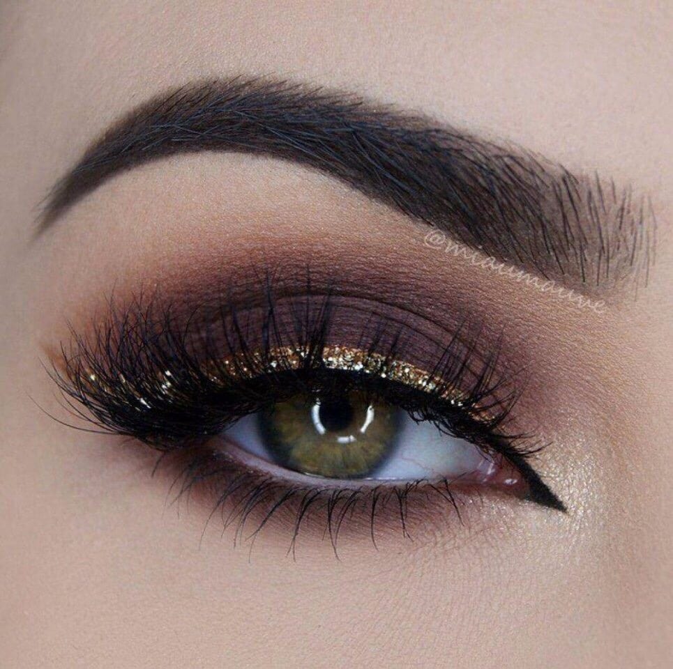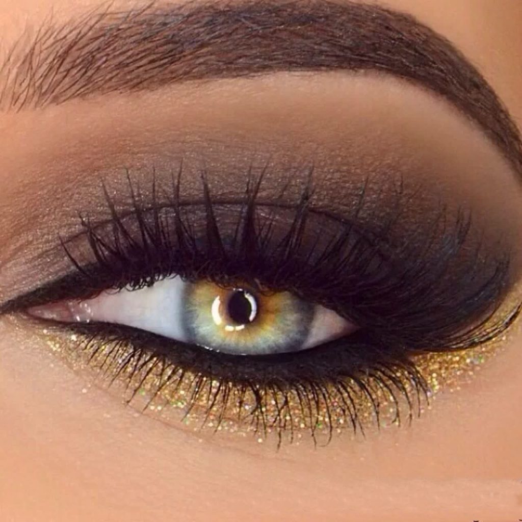If you think that using golden shadows in daily makeup is a bad idea, forget it. Using golden shadows every day is easy. For daily makeup, we need golden shadows of finely ground. we cover with such shadows the entire moving eyelid and then apply a little brown or gray matte shadows to the fold of the eyelid in order to muffle the glitter of gold. Now apply brown or black mascara to the cilia and the makeup is ready.