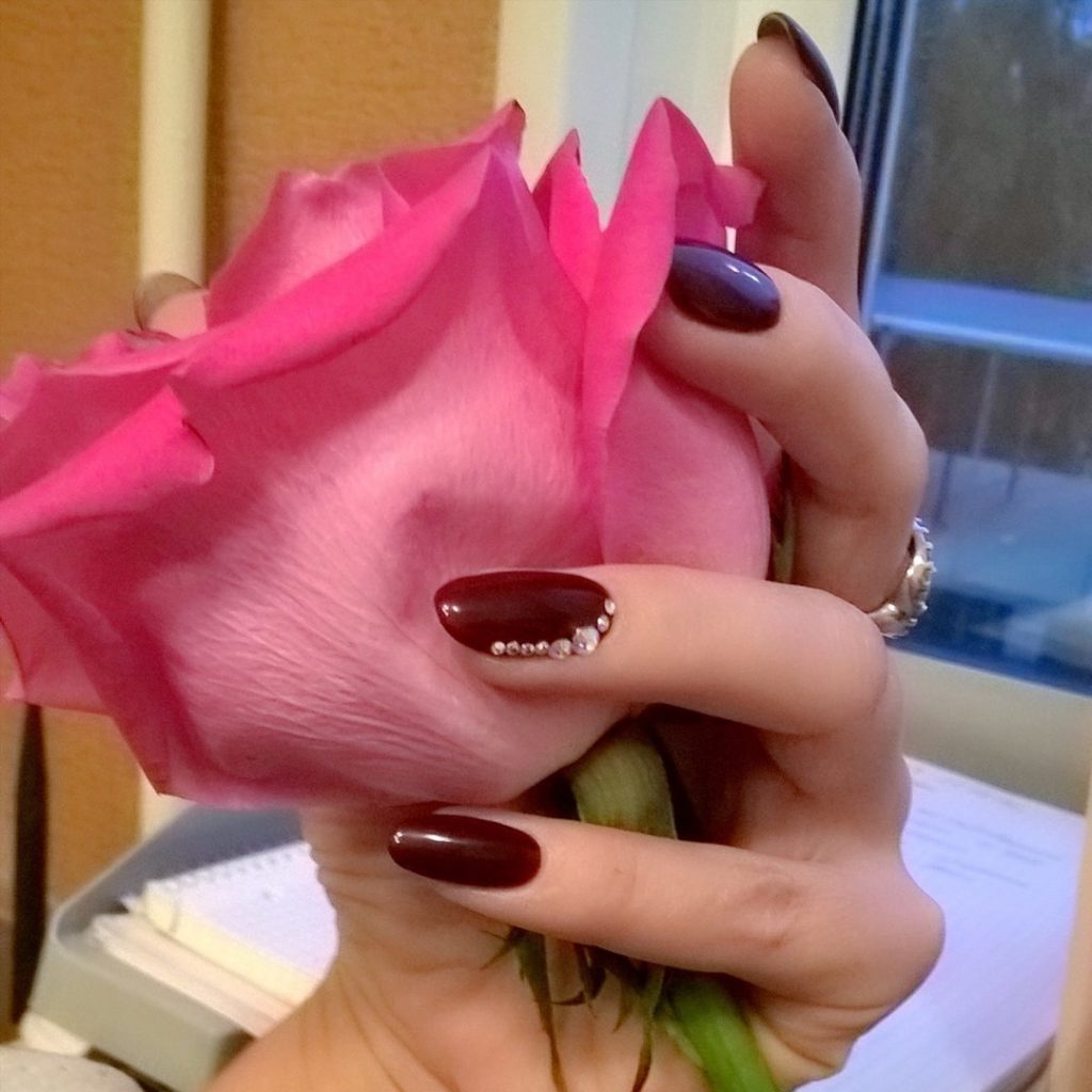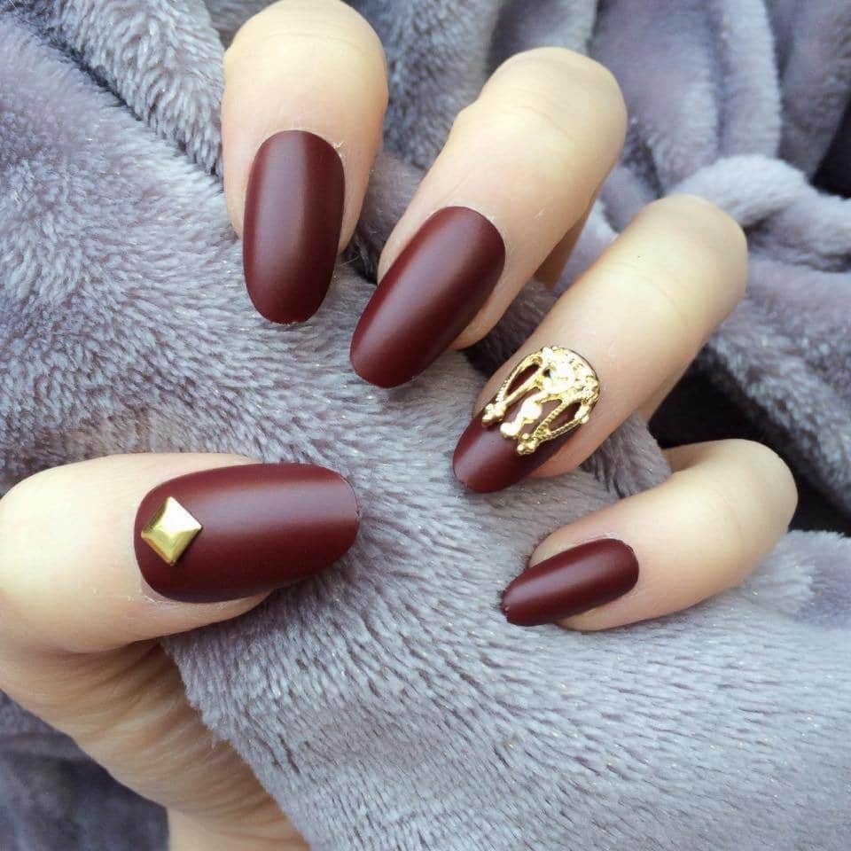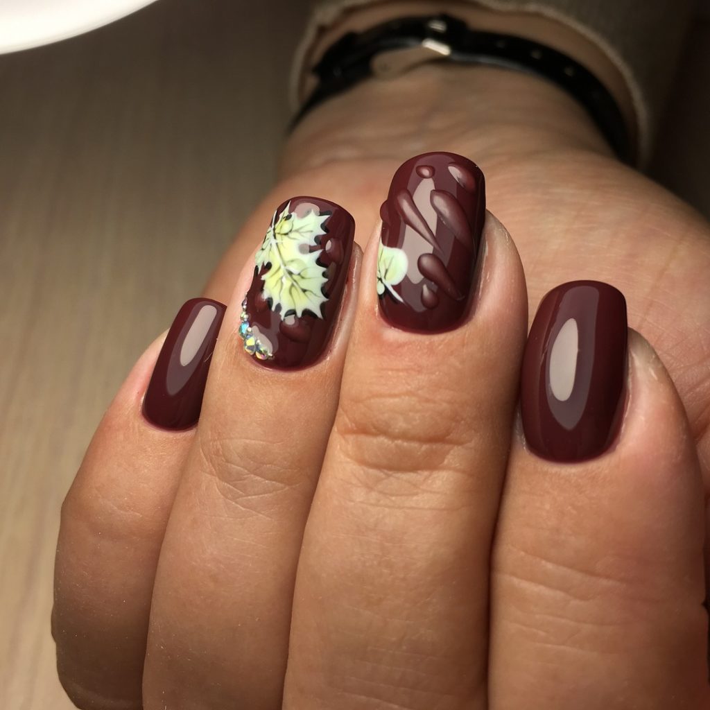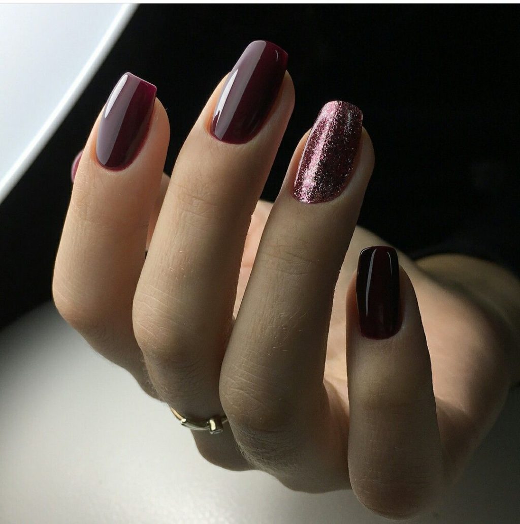 Wine manicure will look stylish not only in the classic version, but also in combination with rhinestones and patterns in gold and other decor options.