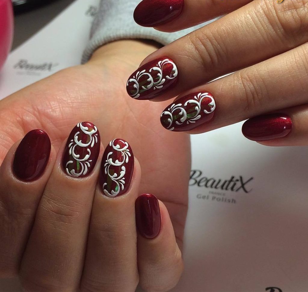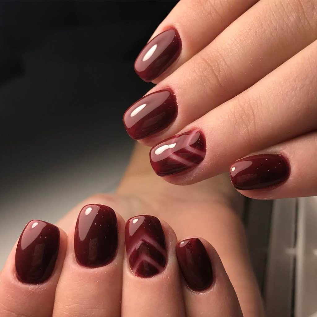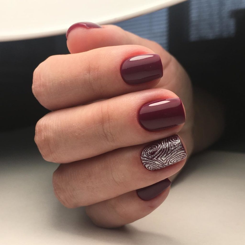 Wine colors will be a good basis for creating a manicure with a picture.