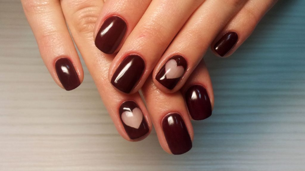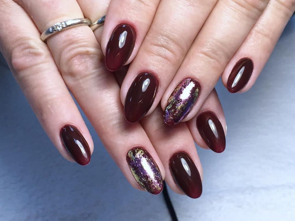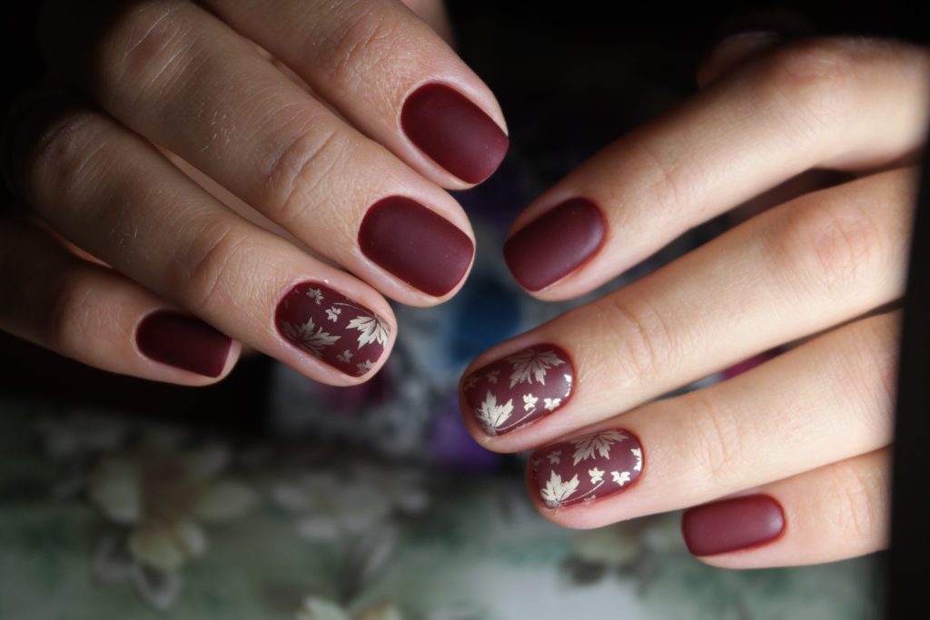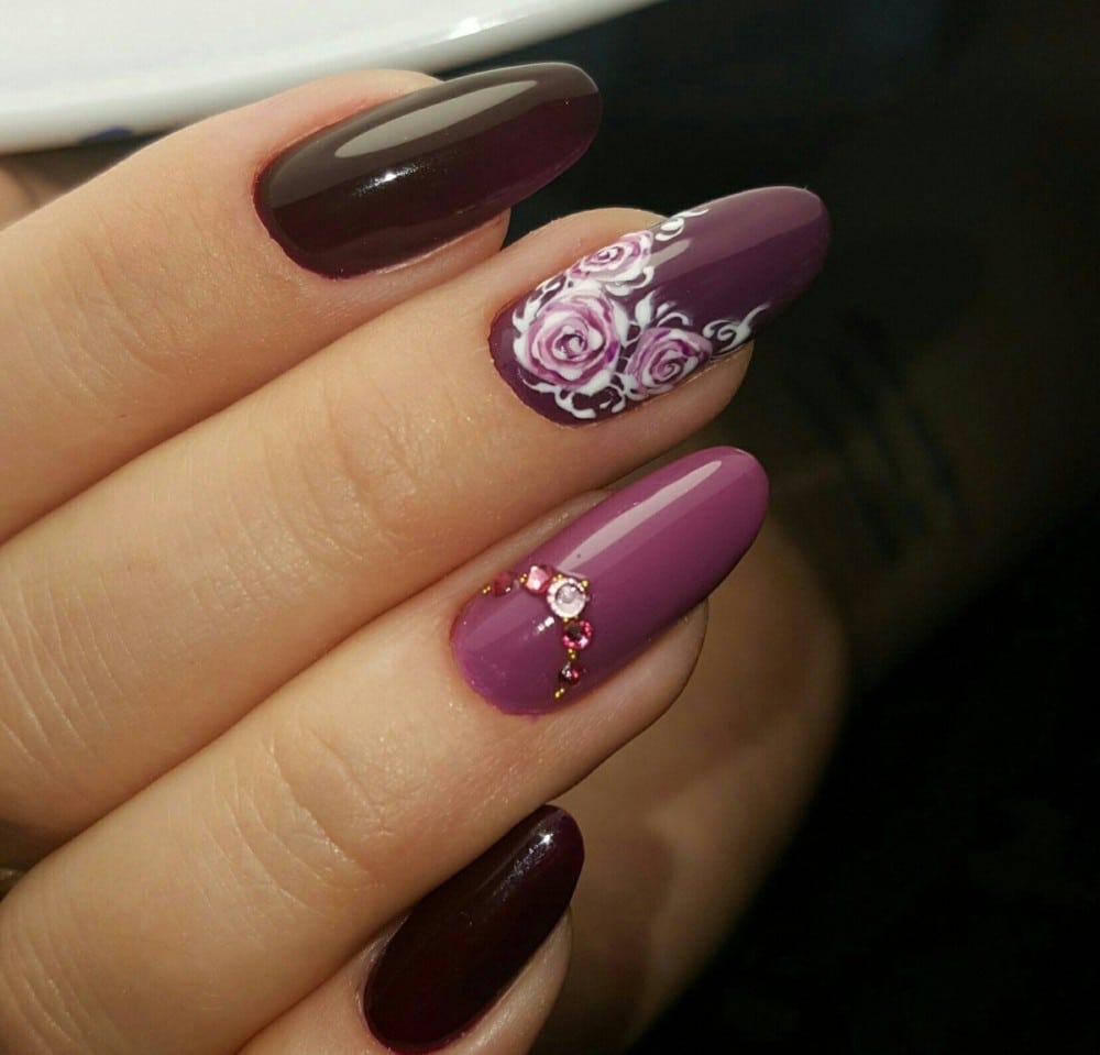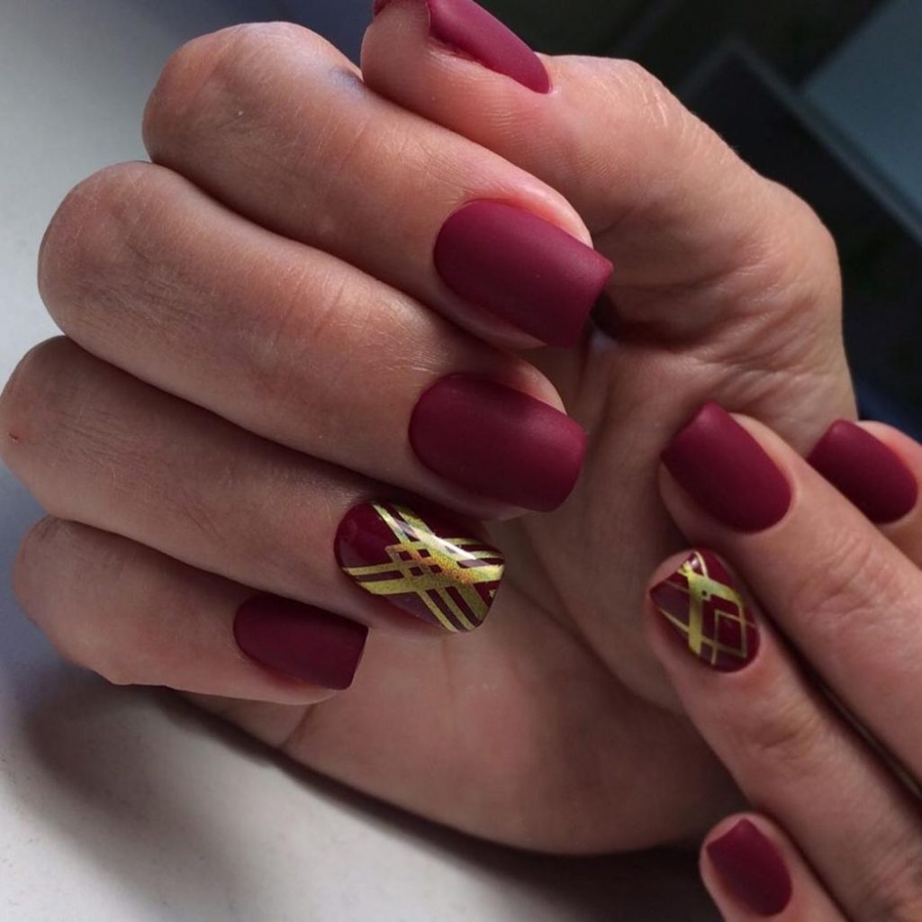 Wine colors will be a good basis for creating a manicure with a picture.