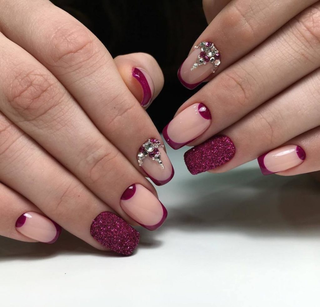 One of the worthy options for wine design is combining it with a French manicure.