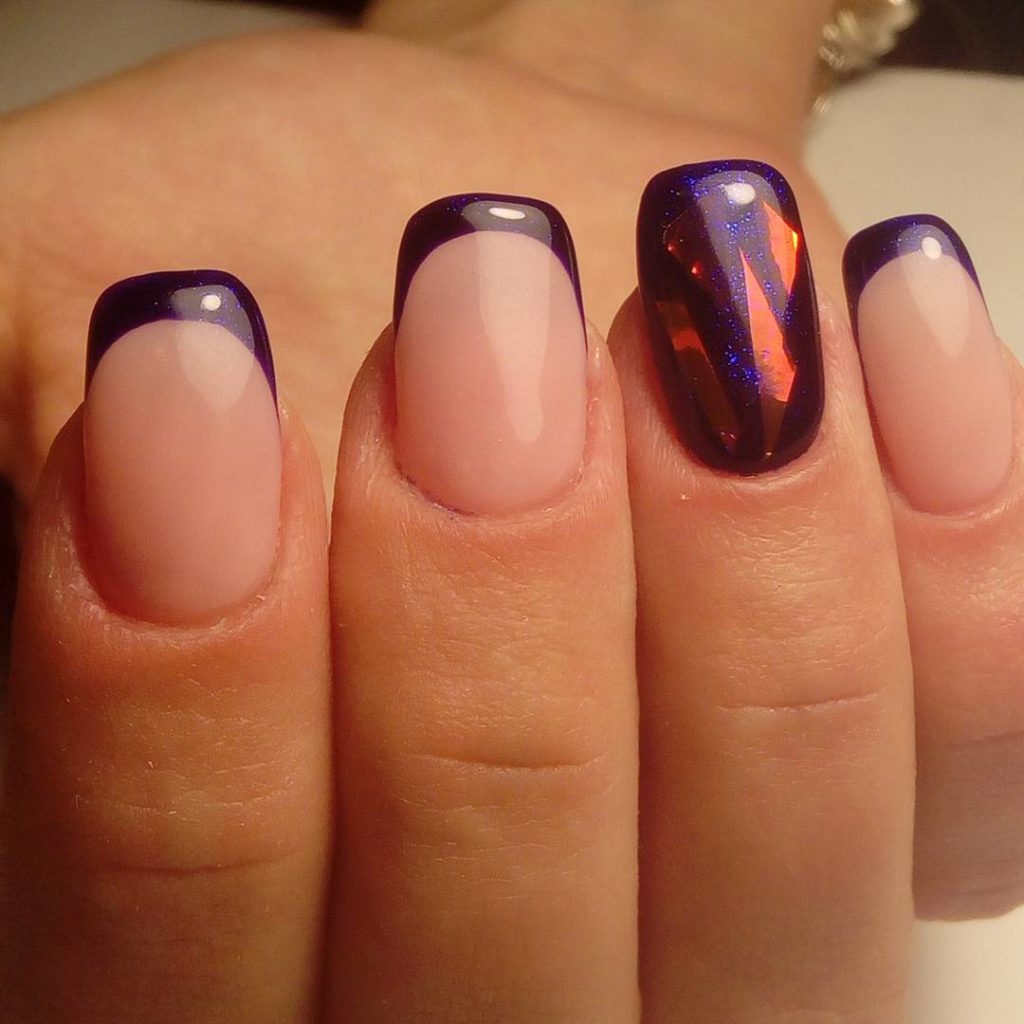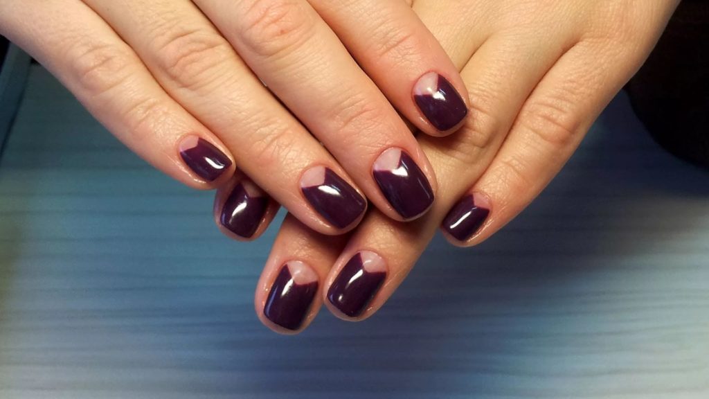 A rich plum shade will look very beautiful in a French design. But not the usual white color of a smile, but replacing it in gold or silver. In the same design, making a moon manicure will also look good.