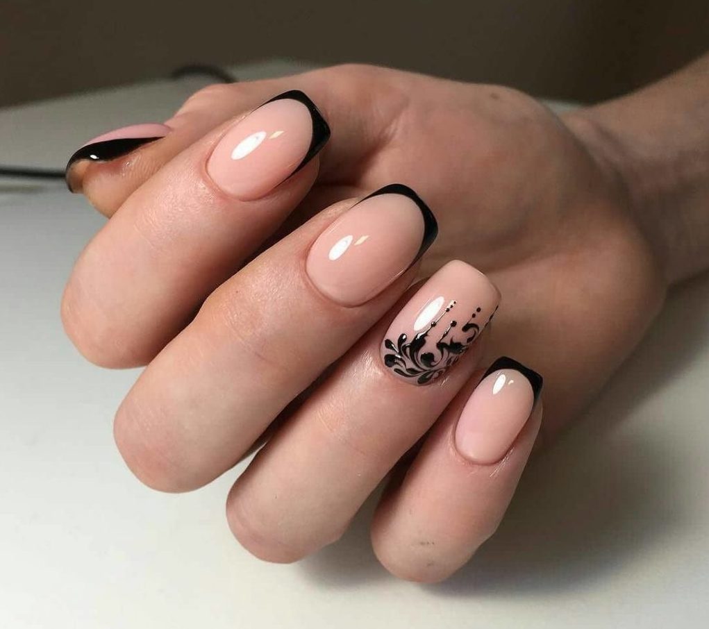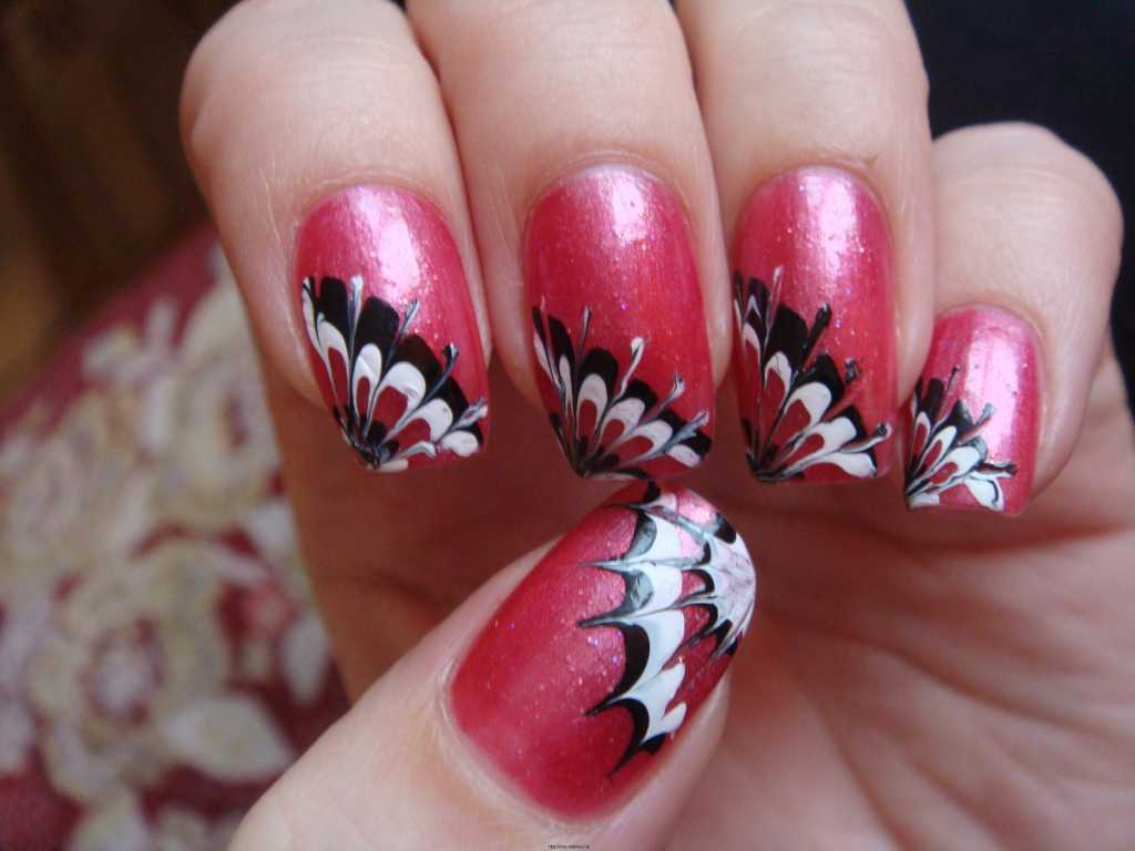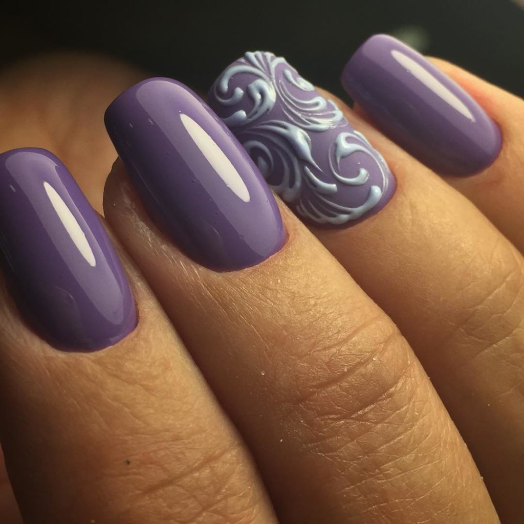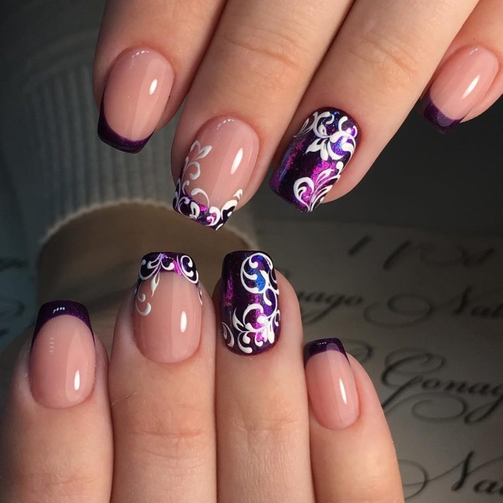 Basically, the most popular choice is to draw patterns in black or white acrylic paint. Because such colors are universal and perfectly match any varnish color. And the stylish solution will be to choose a white varnish, and on top draw black patterns in the form of stems or other patterns. After all, here you can already draw exactly what your imagination tells you.