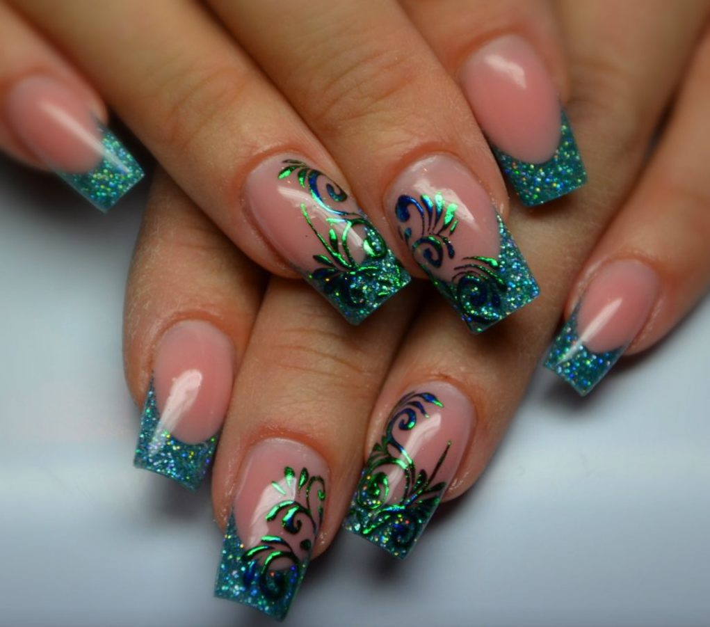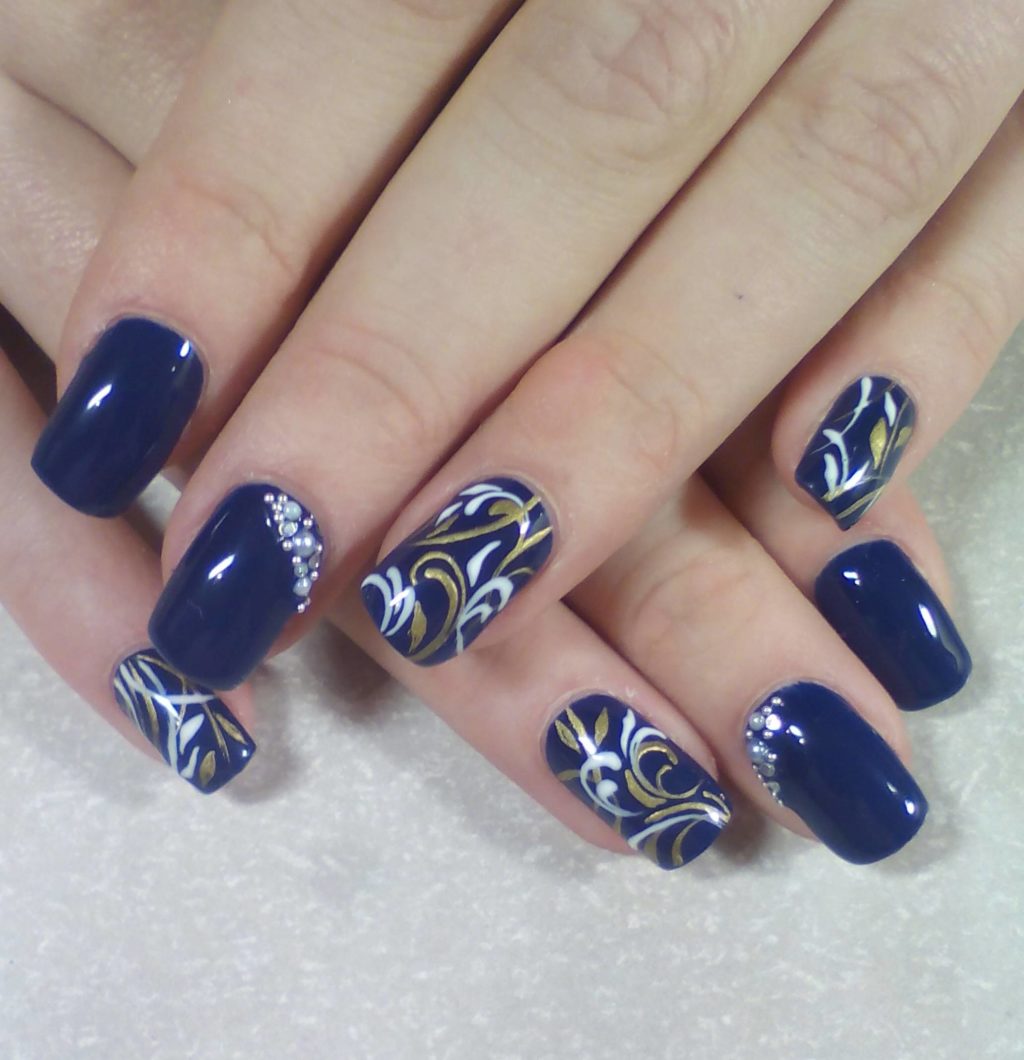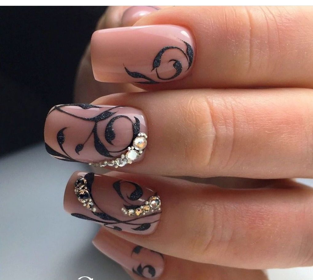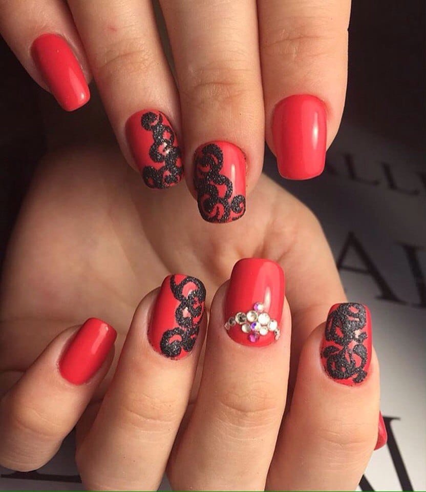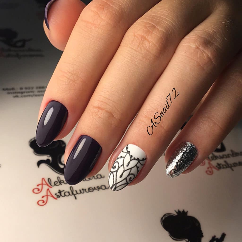 Apply patterns with shiny paints or varnishes. Silver, gold and other colors with sparkles will help you create a festive manicure. And of course do not give up the decor. Rhinestones will be a great addition to such patterns and will make it even more vivid and attractive.
