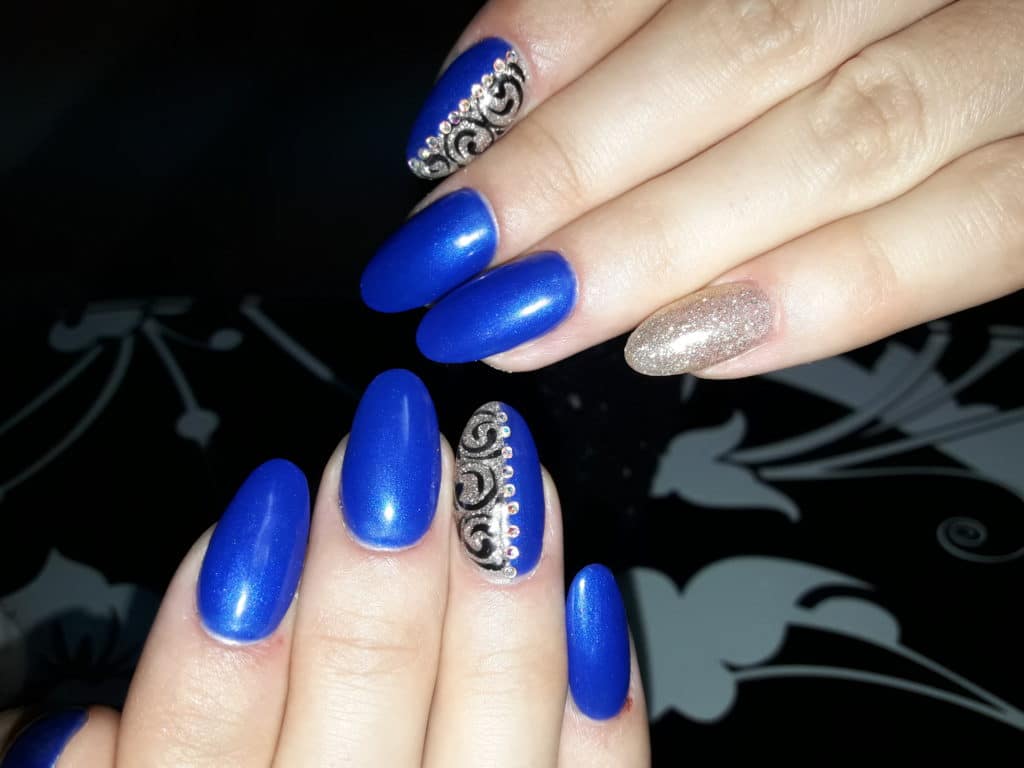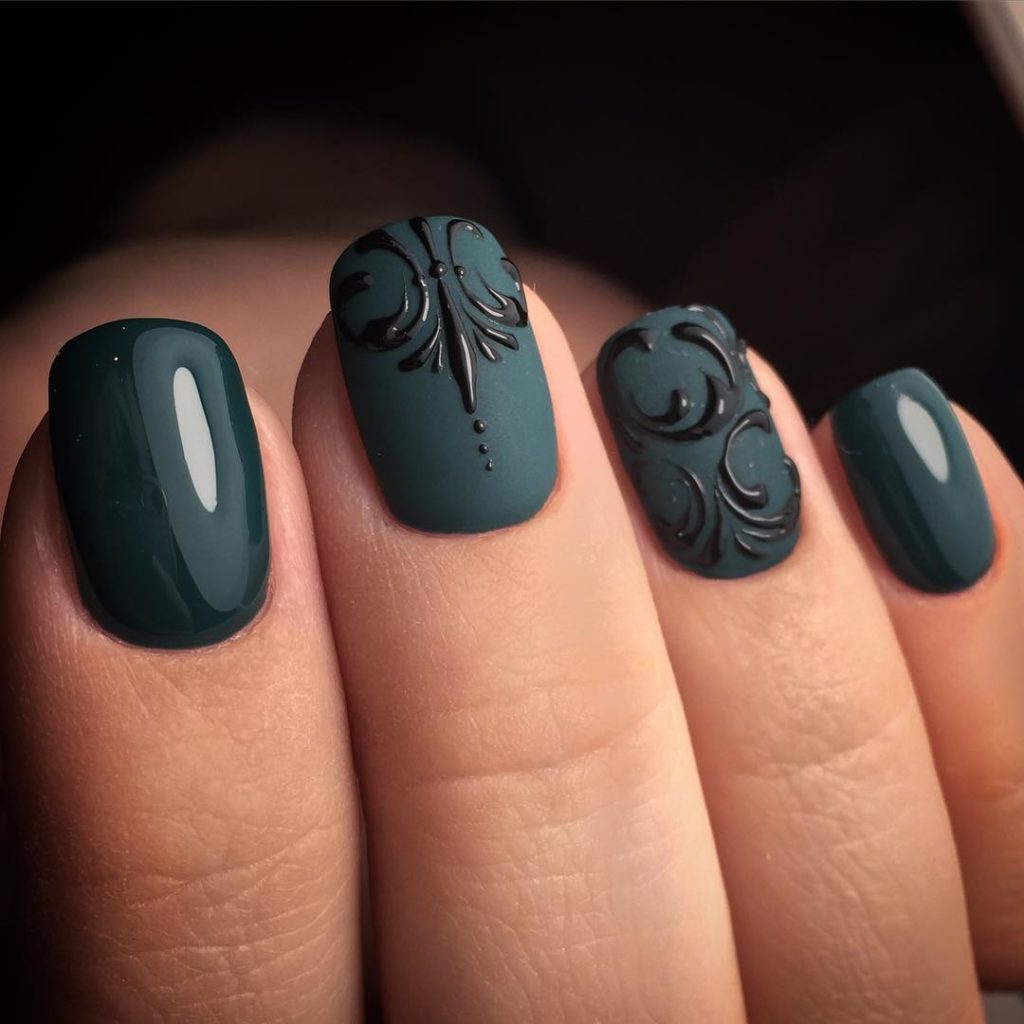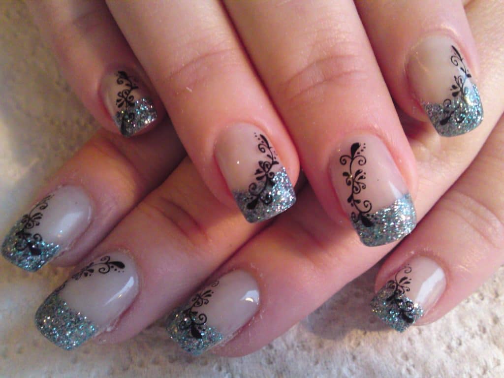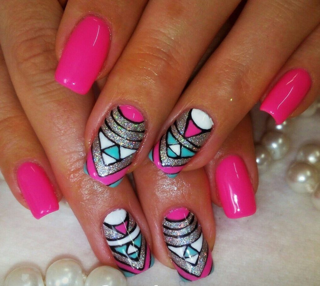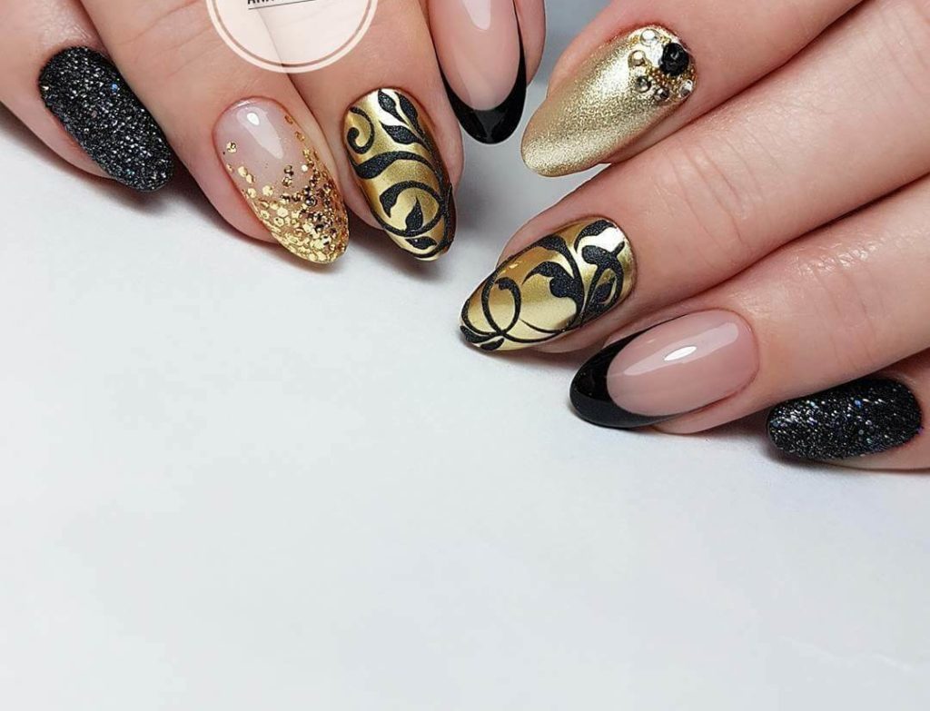 Apply patterns with shiny paints or varnishes. Silver, gold and other colors with sparkles will help you create a festive manicure. And of course do not give up the decor. Rhinestones will be a great addition to such patterns and will make it even more vivid and attractive.