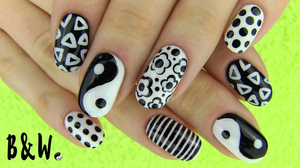 Also choose a bright palette of varnish. Where black or white patterns will look very profitable on such a color. You can also highlight with a pattern one of the fingers or all or combine two different colors of varnish with each other.