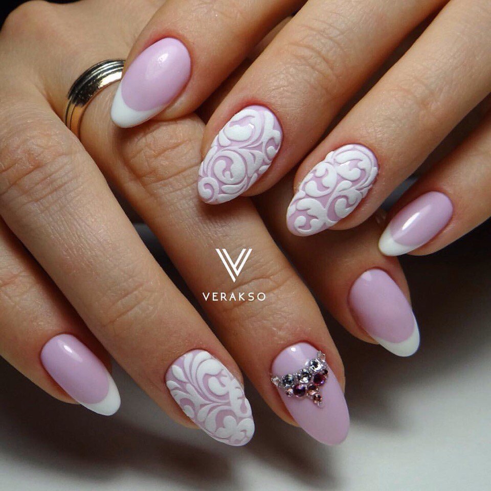 A beautiful and pretty fashionable choice will be to put a monogram on a French manicure. And the jacket itself may not necessarily be a classic look. It can also be a color or moon jacket, or a combination of both.