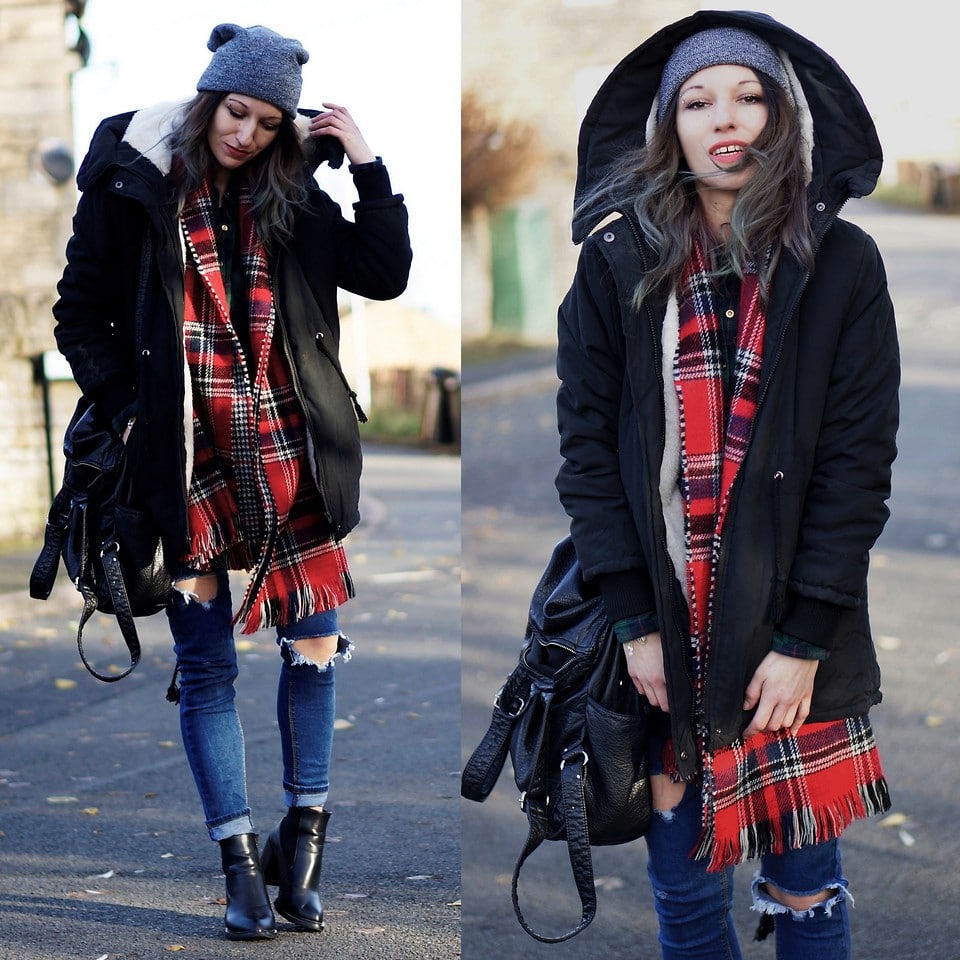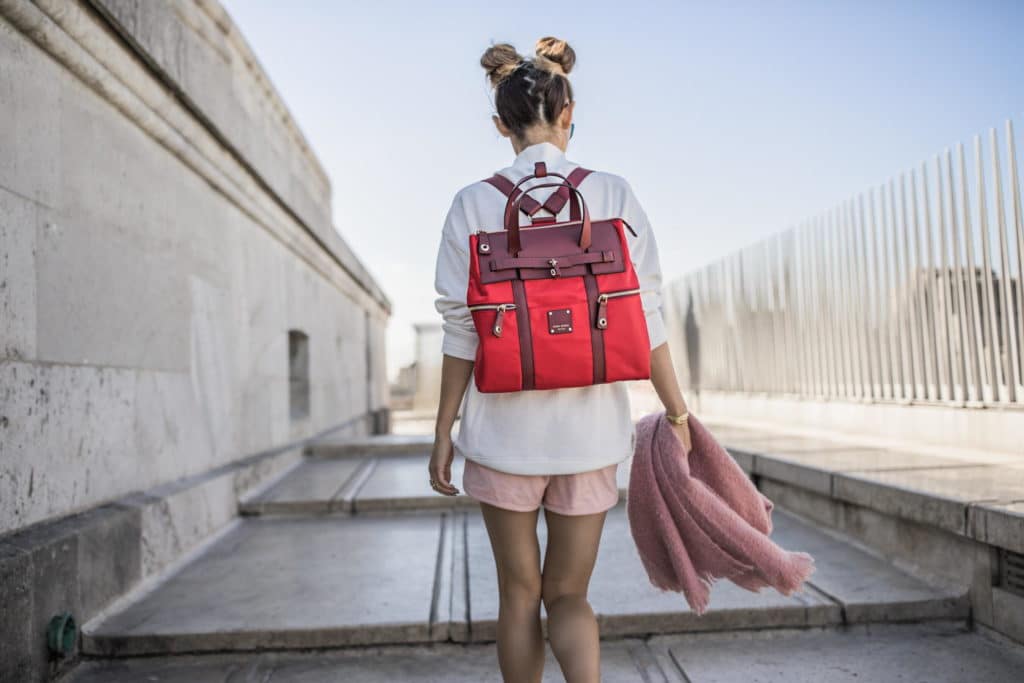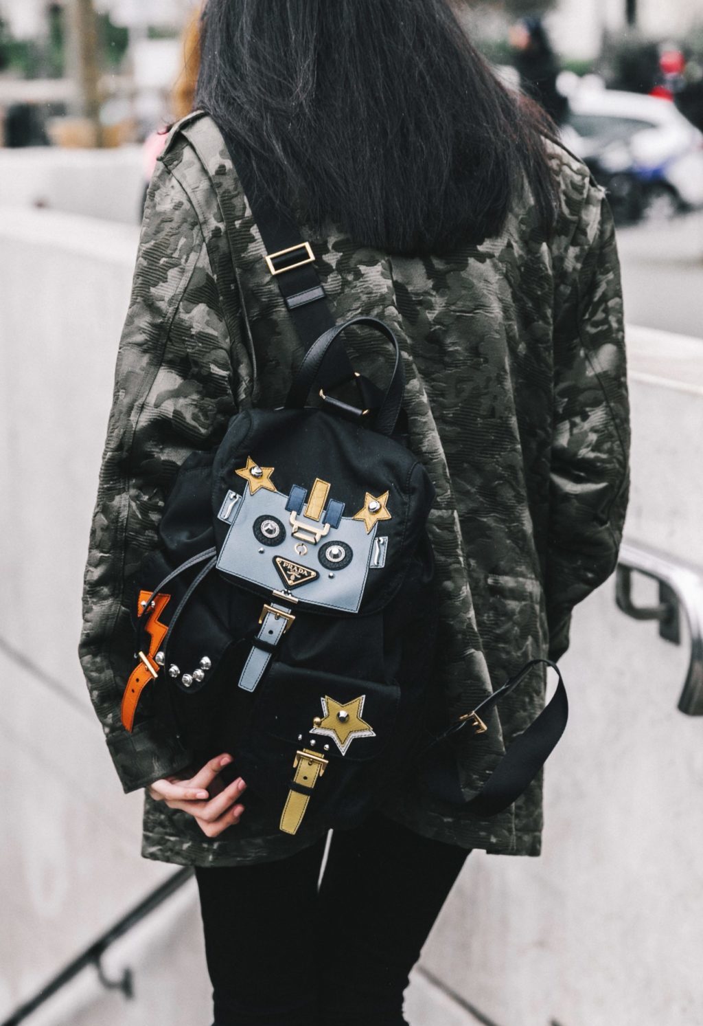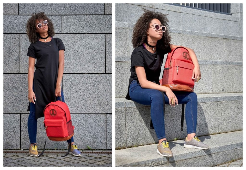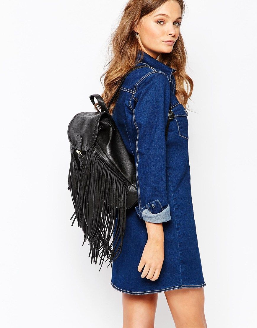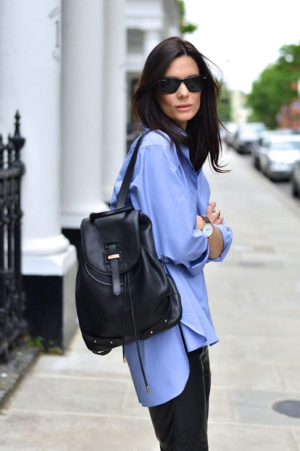Also, the backpack goes well with denim. You can wear a long denim shirt and a small black backpack.