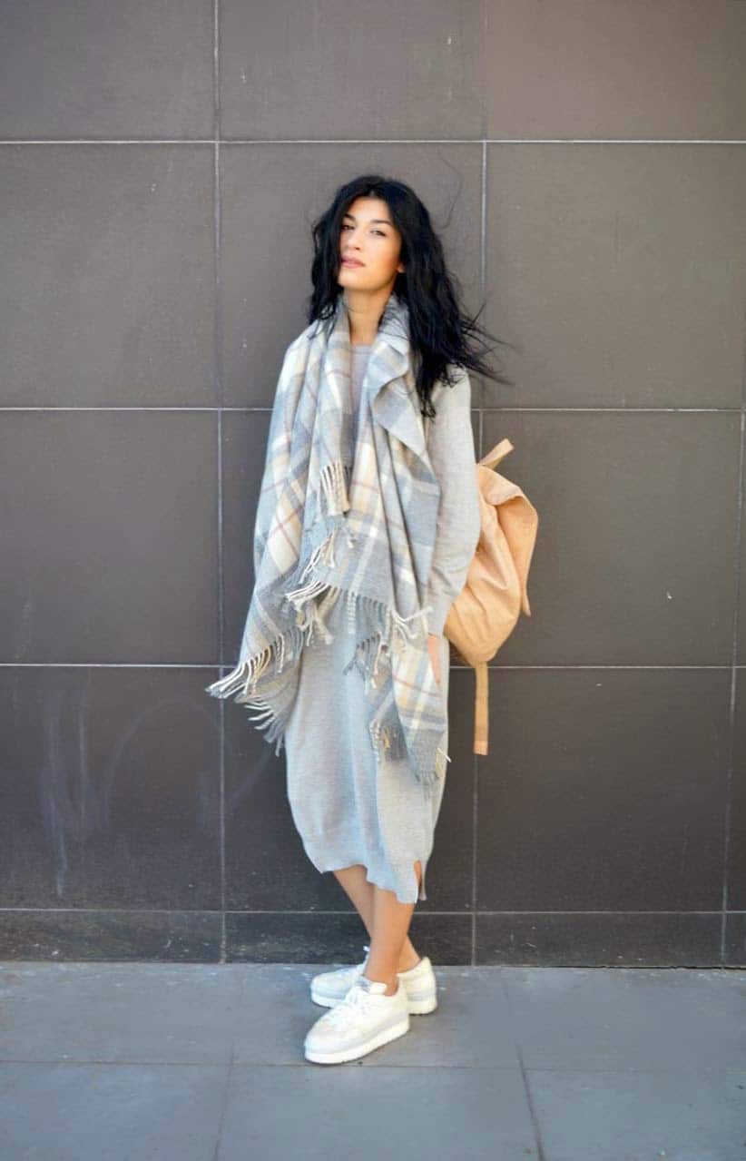 You can choose sweatpants or tracksuit to create a sporty look. And for a more casual look, suitable for all occasions, choose jeans or trousers that are not classic options. Lightweight, silk scarf under the dress, combined with a backpack, will help you create a great spring look. Also choose light turtlenecks and sweaters.