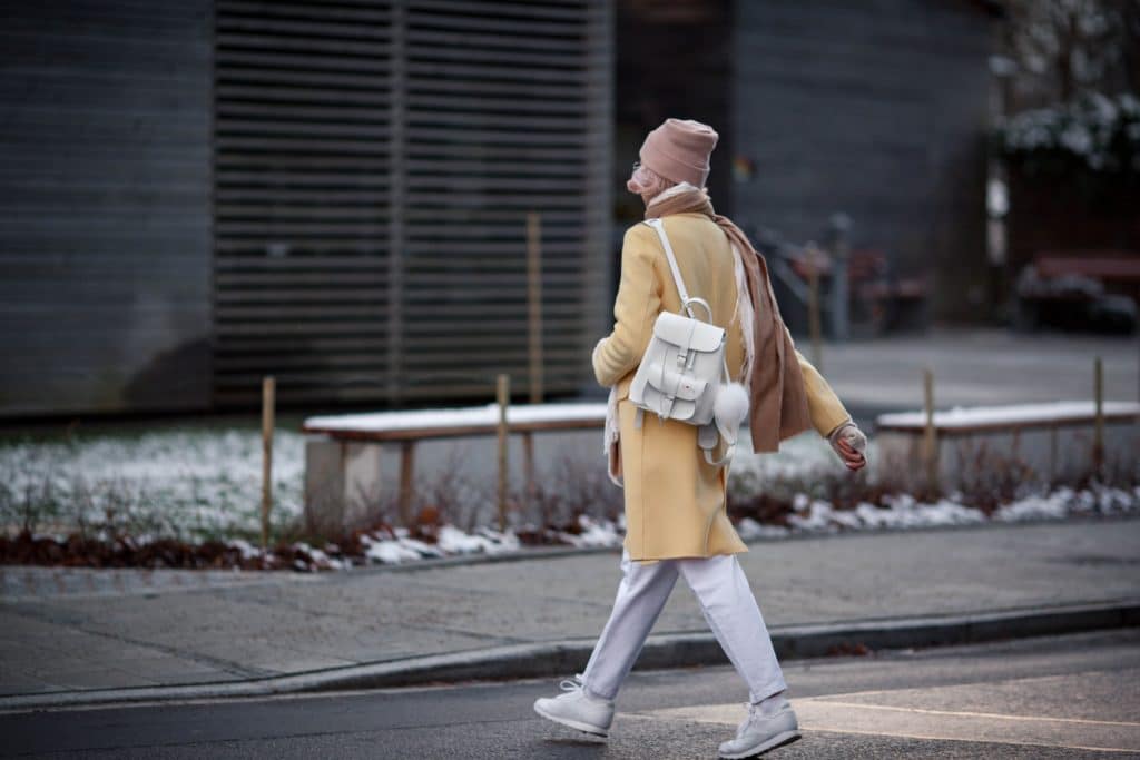 It would seem that light backpacks are designed only for wear in warm weather. But no. They go well with warmer dresses, sweater dresses, puffer jackets and coats.