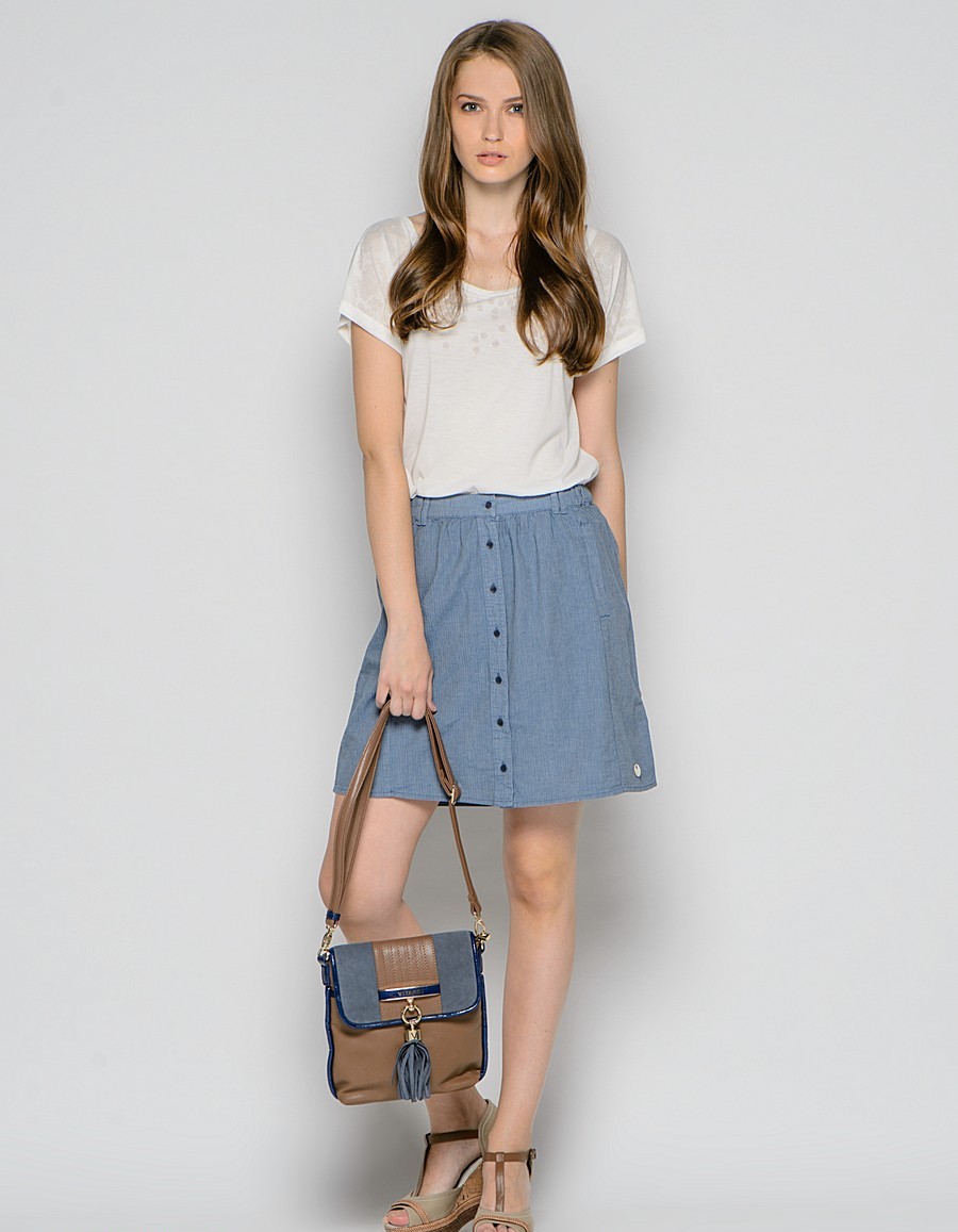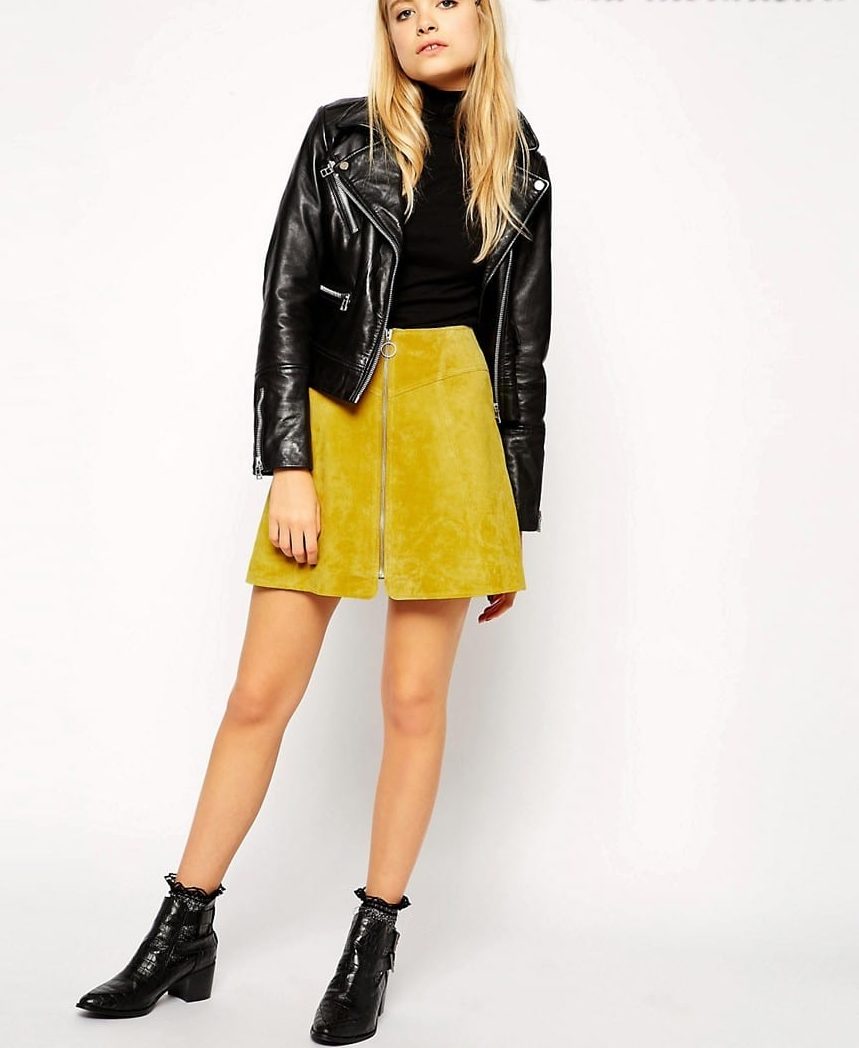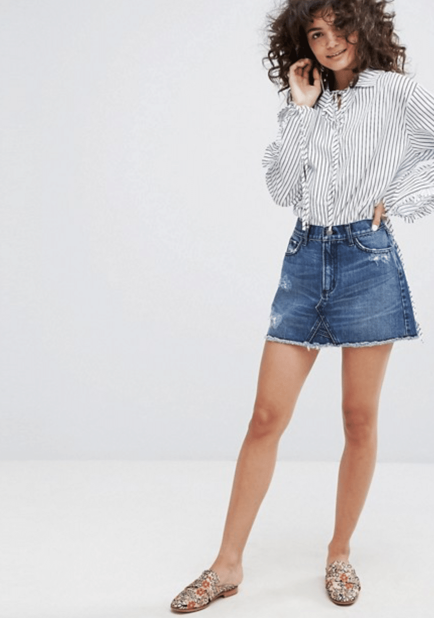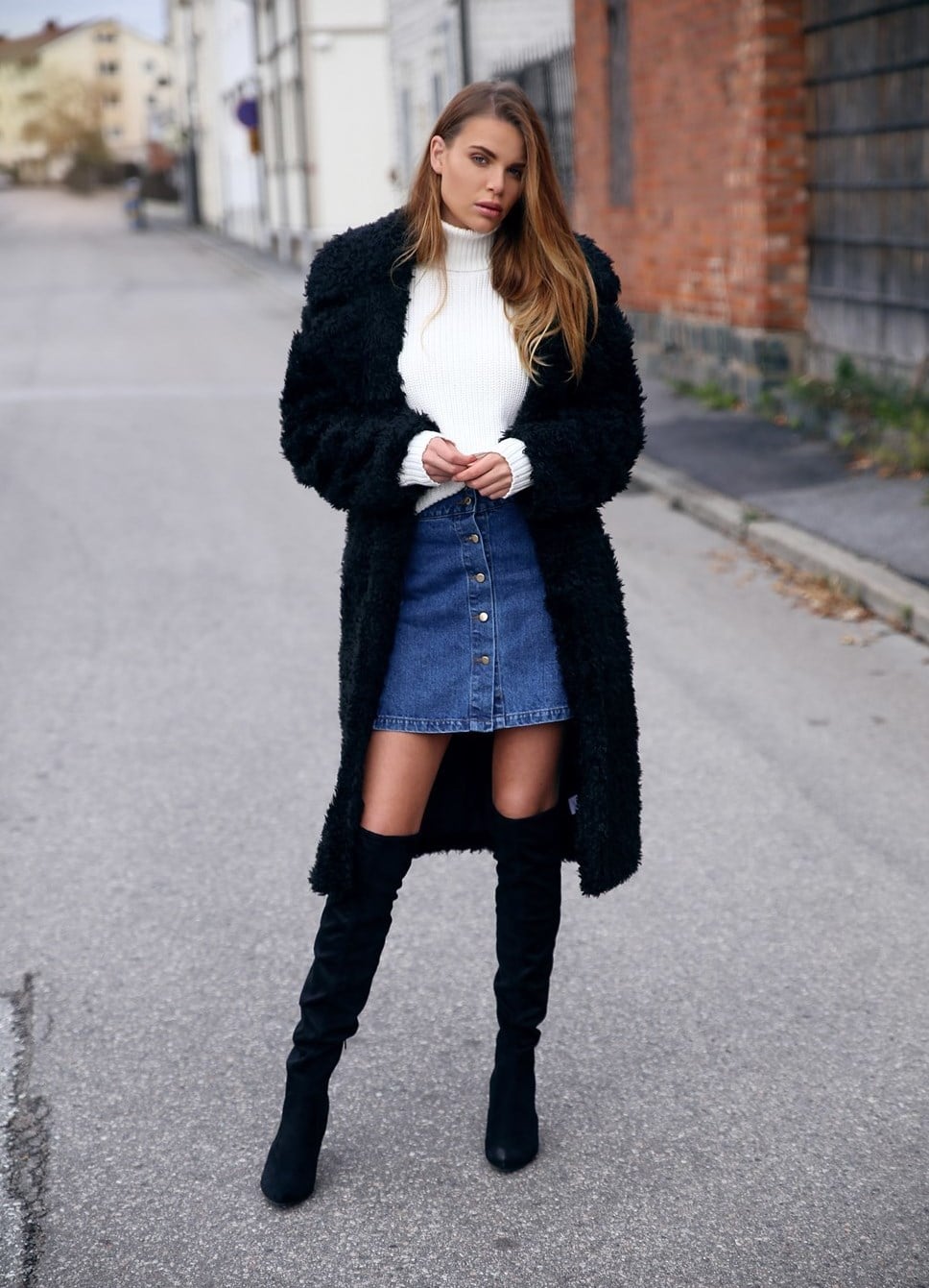 The denim a-line skirt is very practical. Of course, you can’t put it on work where the dress code works, but it is perfect for you for other events.