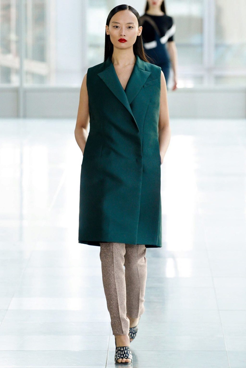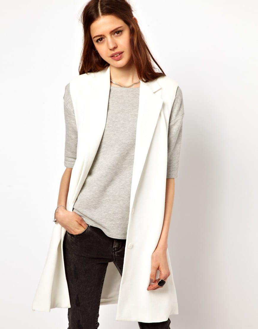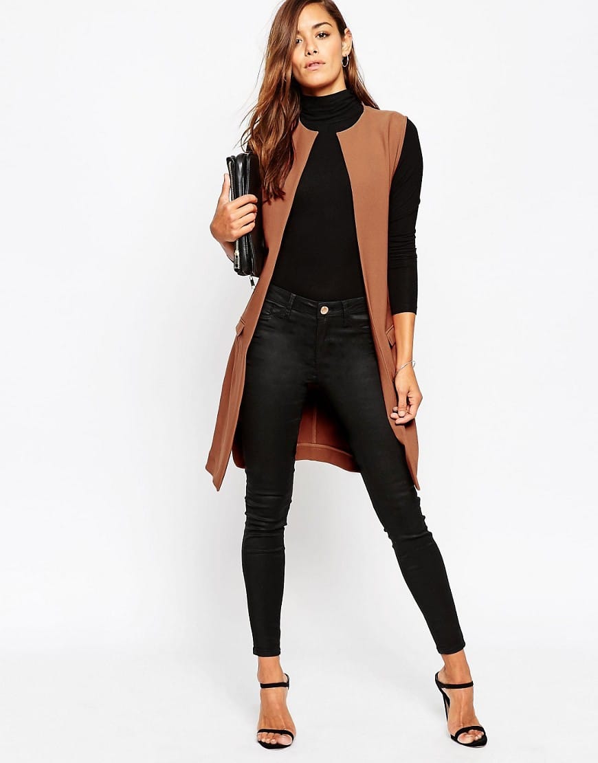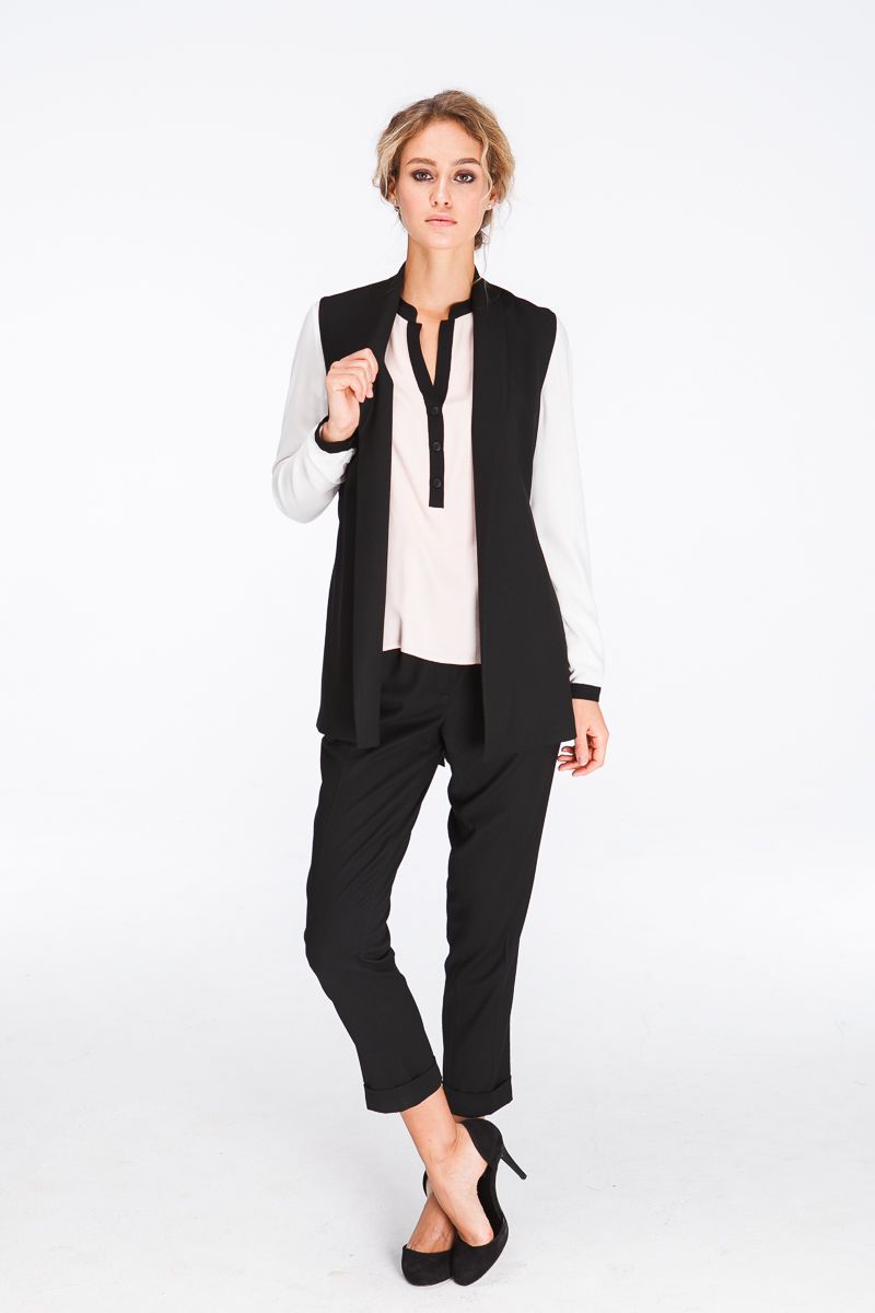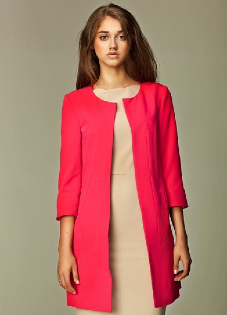 An extended jacket is, as it were, a simplified version of a regular jacket. It has no sleeves, and also mostly goes without buttons. Such a jacket can be worn at different times of the year, except for winter. You can wear it over summer shirts, and in cooler weather on top of a sweater.