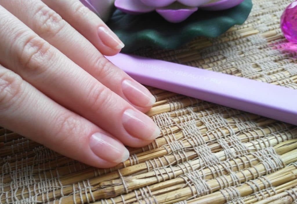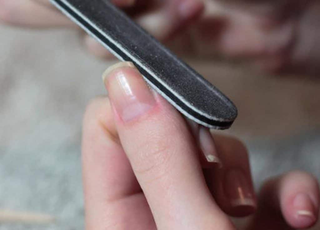 - Correct the shape of the nails with a nail file. Your movements should follow only one direction. From one side to the other, trying to gently file a smile zone.