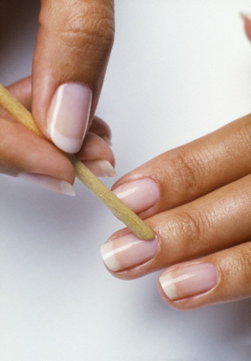 - Then we proceed to the removal of the cuticle. To do this, apply a special cosmetic gel, cream or oil of your choice to the cuticle. And leave for 1-3 minutes. After we push the cuticle from the nail plate using an orange stick. Also clean the cuticles from the cuticles.
