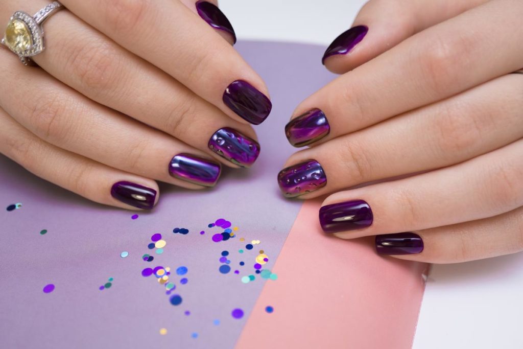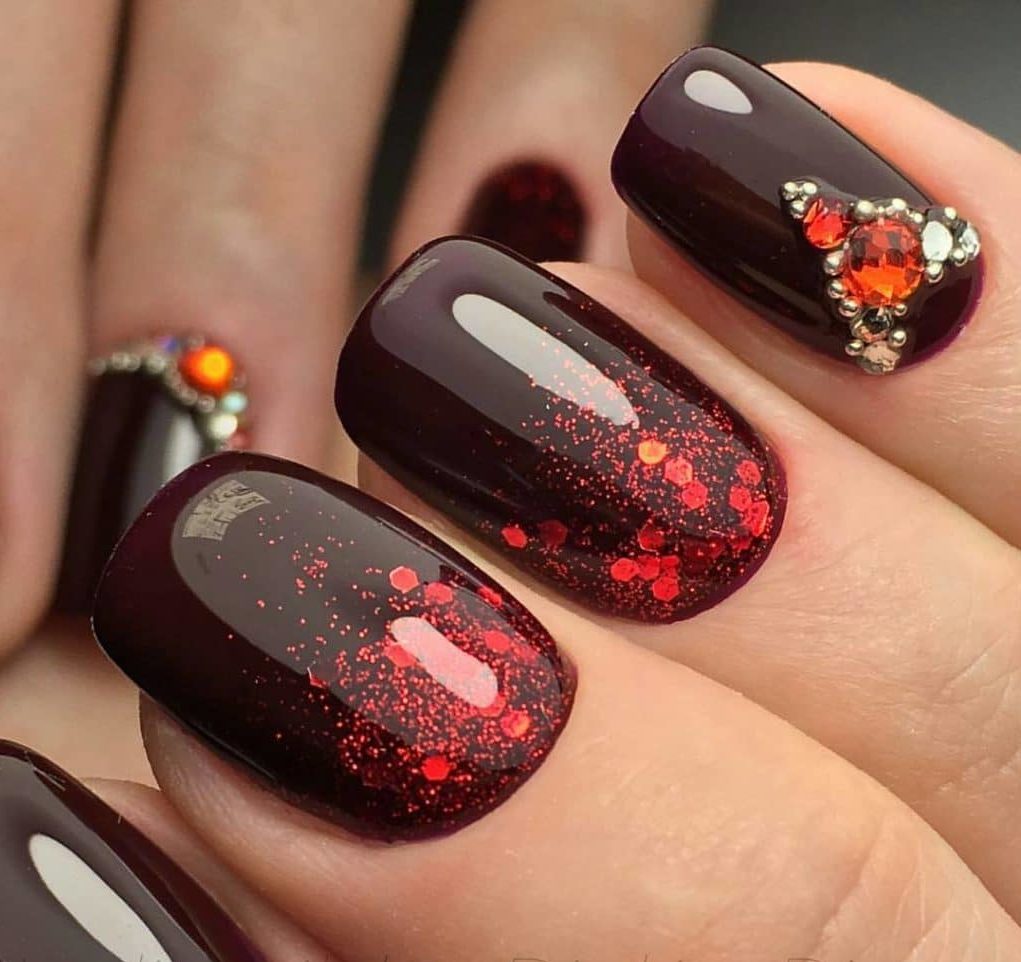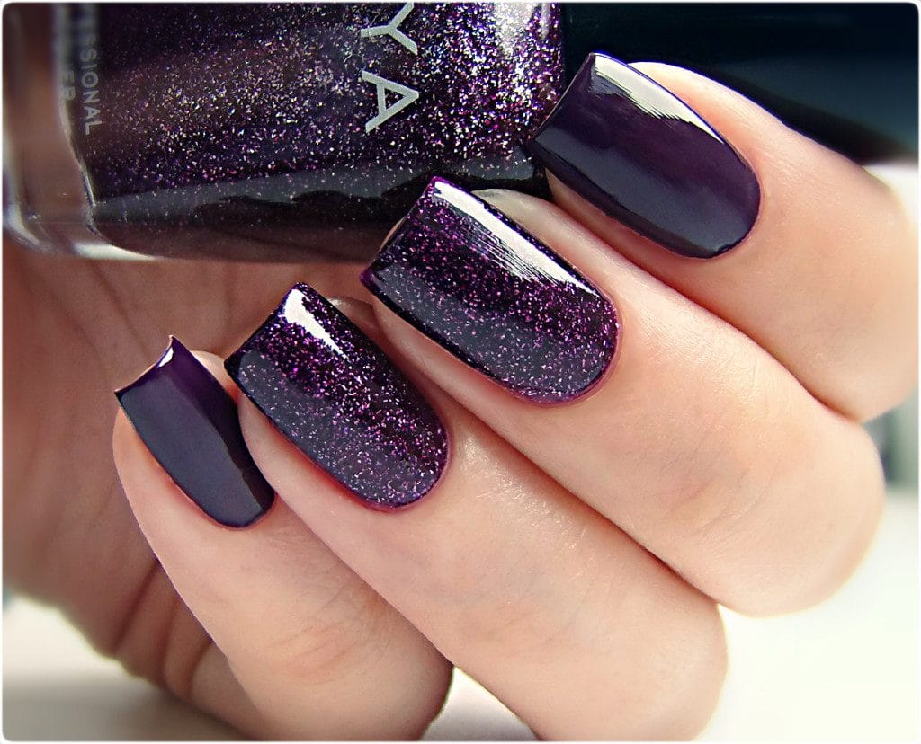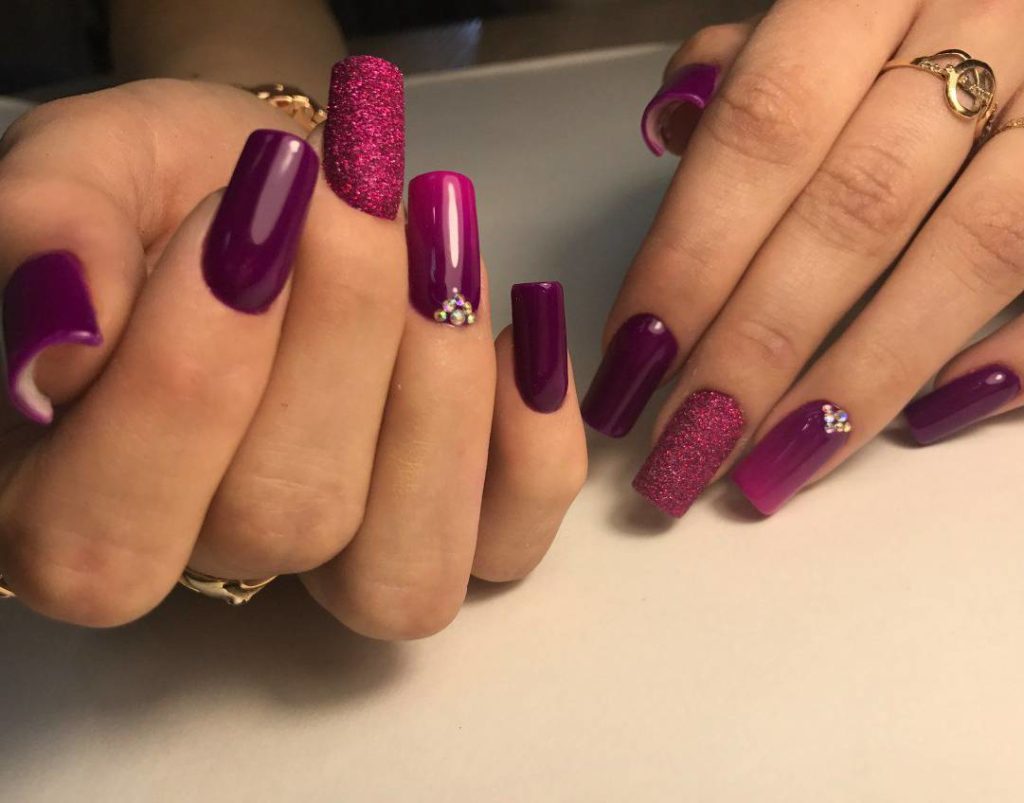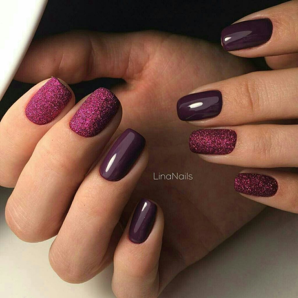 Sparkles - how we love these little colorful particles that make us rejoice just by looking at them. And a very good idea will be to add to the plum manicure, such a joy. Your sparkles can be of different sizes, from the smallest, almost dust, to large grains.