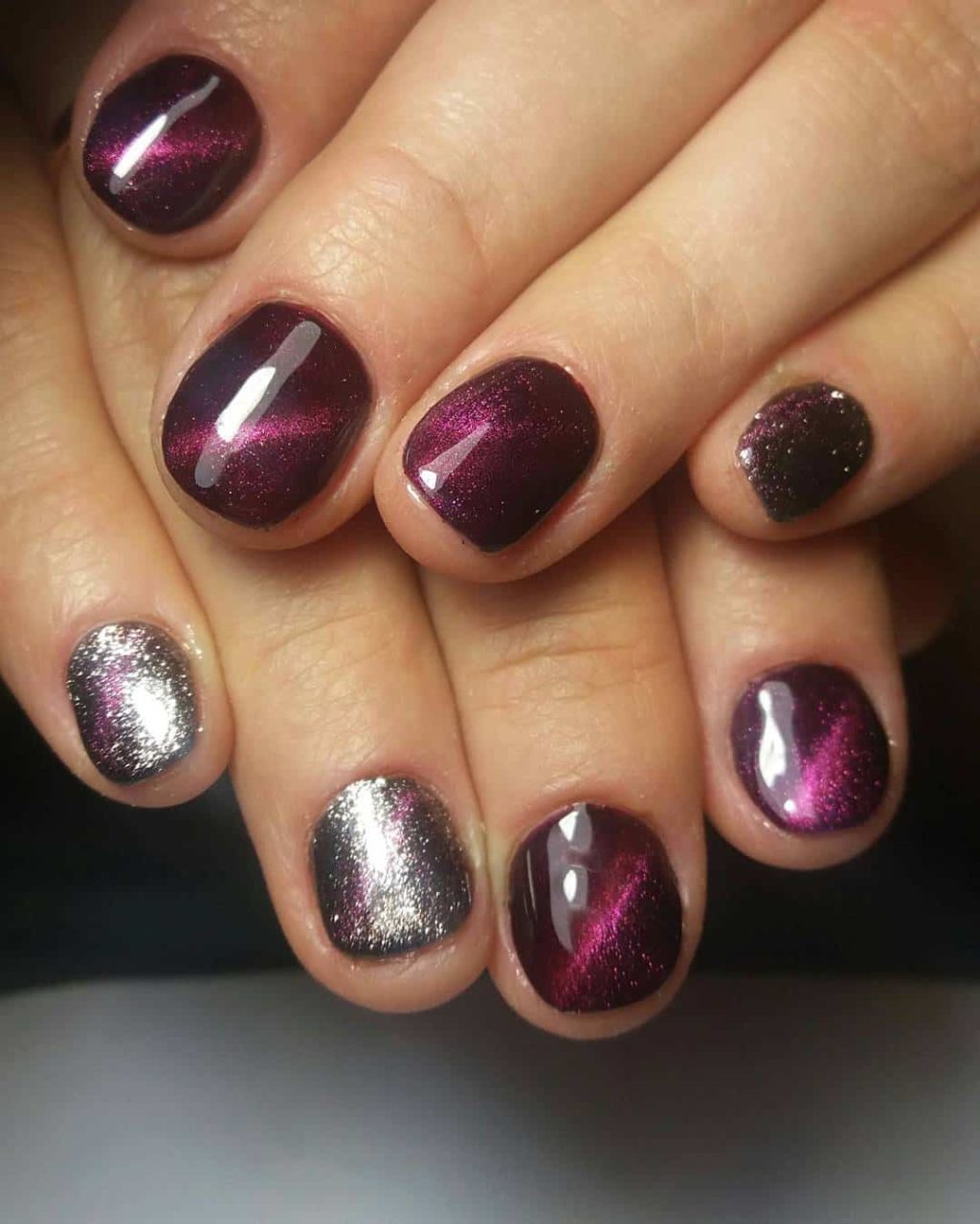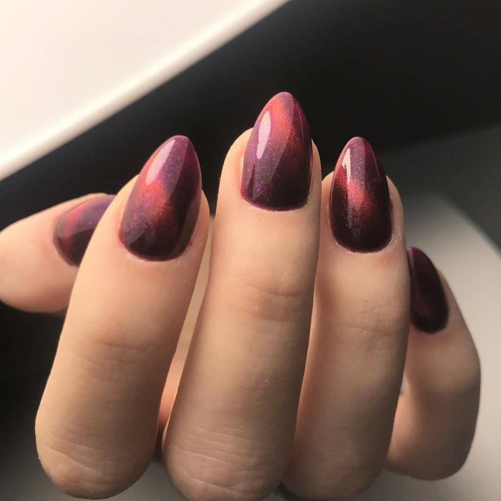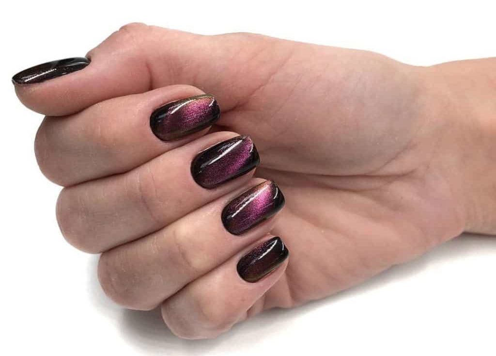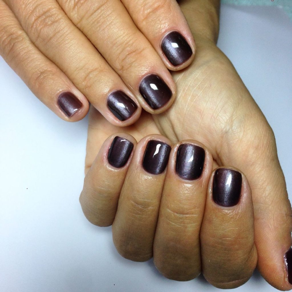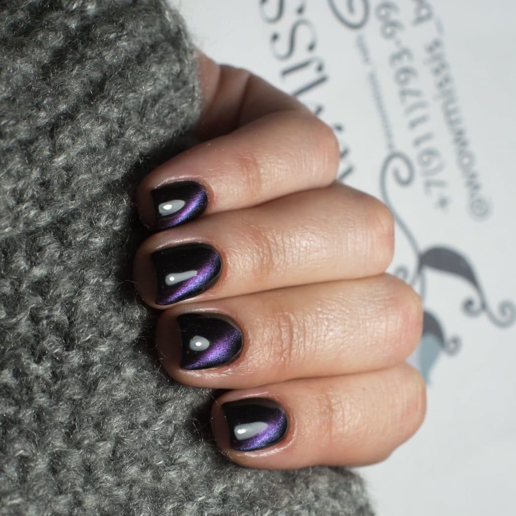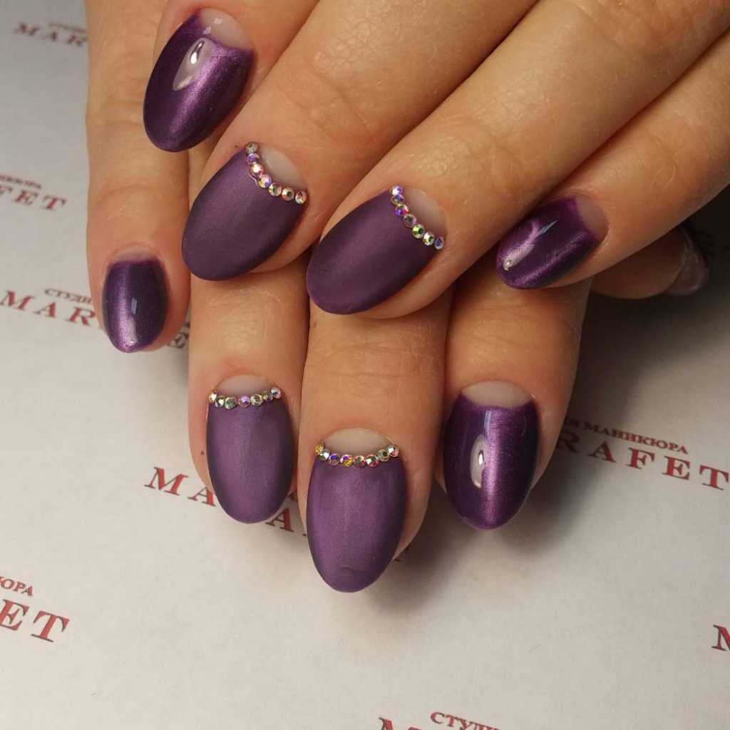 Plum color is perfectly revealed using this application technique. And its relevance will always be in demand. If you have not tried the cat-eye technique, be sure to apply it, especially in a plum shade.