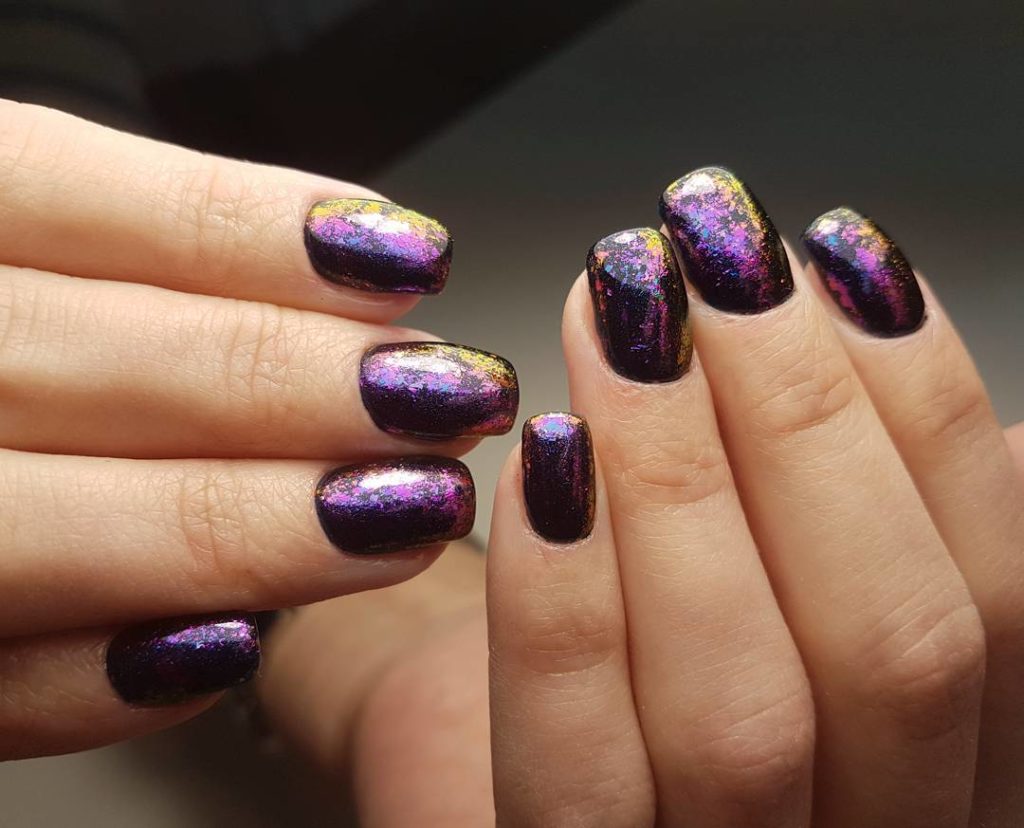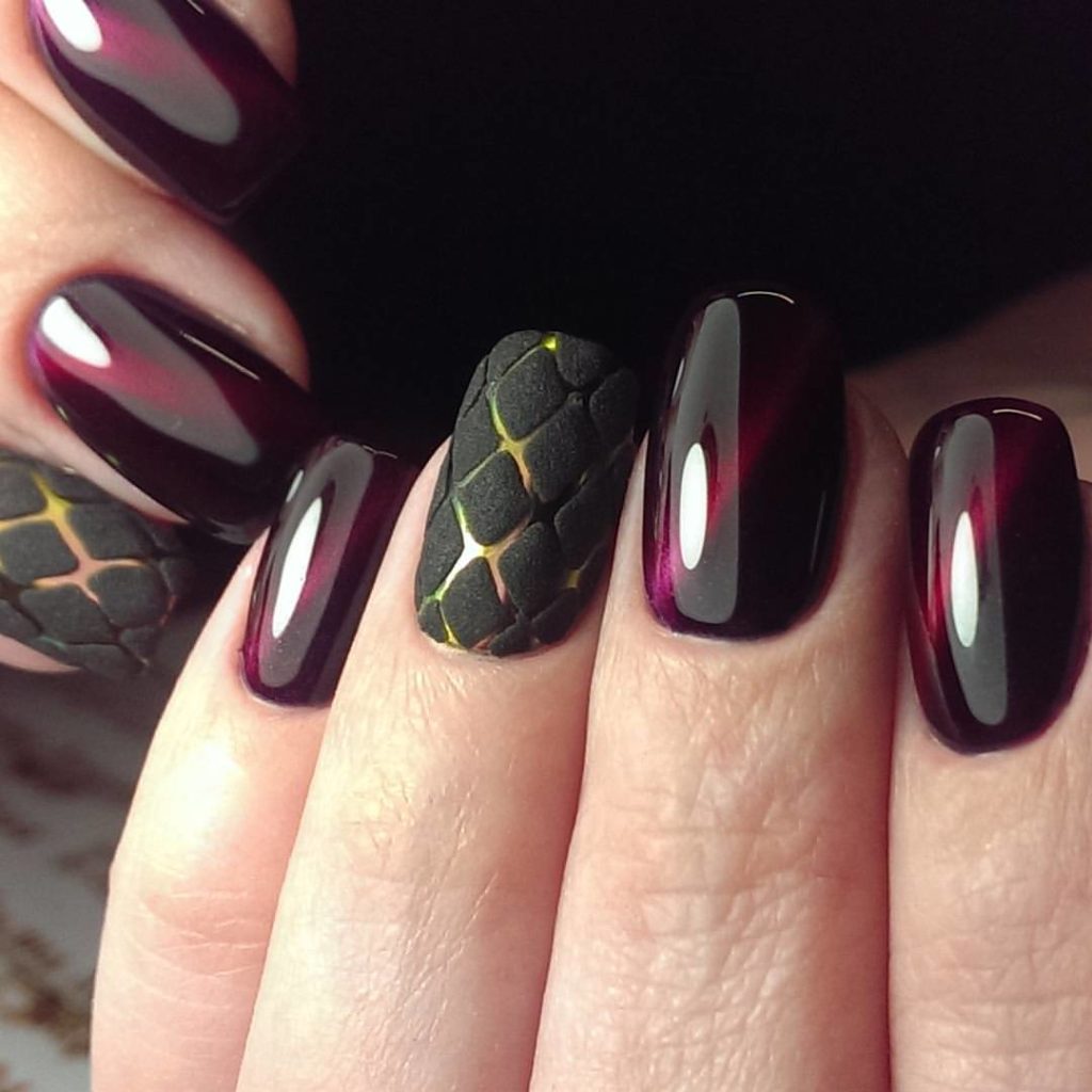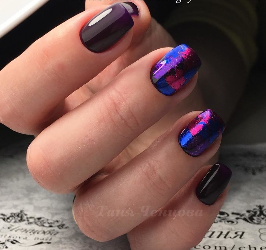 And also do not forget about the foil. She will add to your manicure an amazing and unusual look. And by the way, it is not necessary to choose sparkles or foil in plum color. It can be any color, but it is preferable in tone matching the power color. It can be dark red, purple, burgundy, lilac, pink and navy blue.