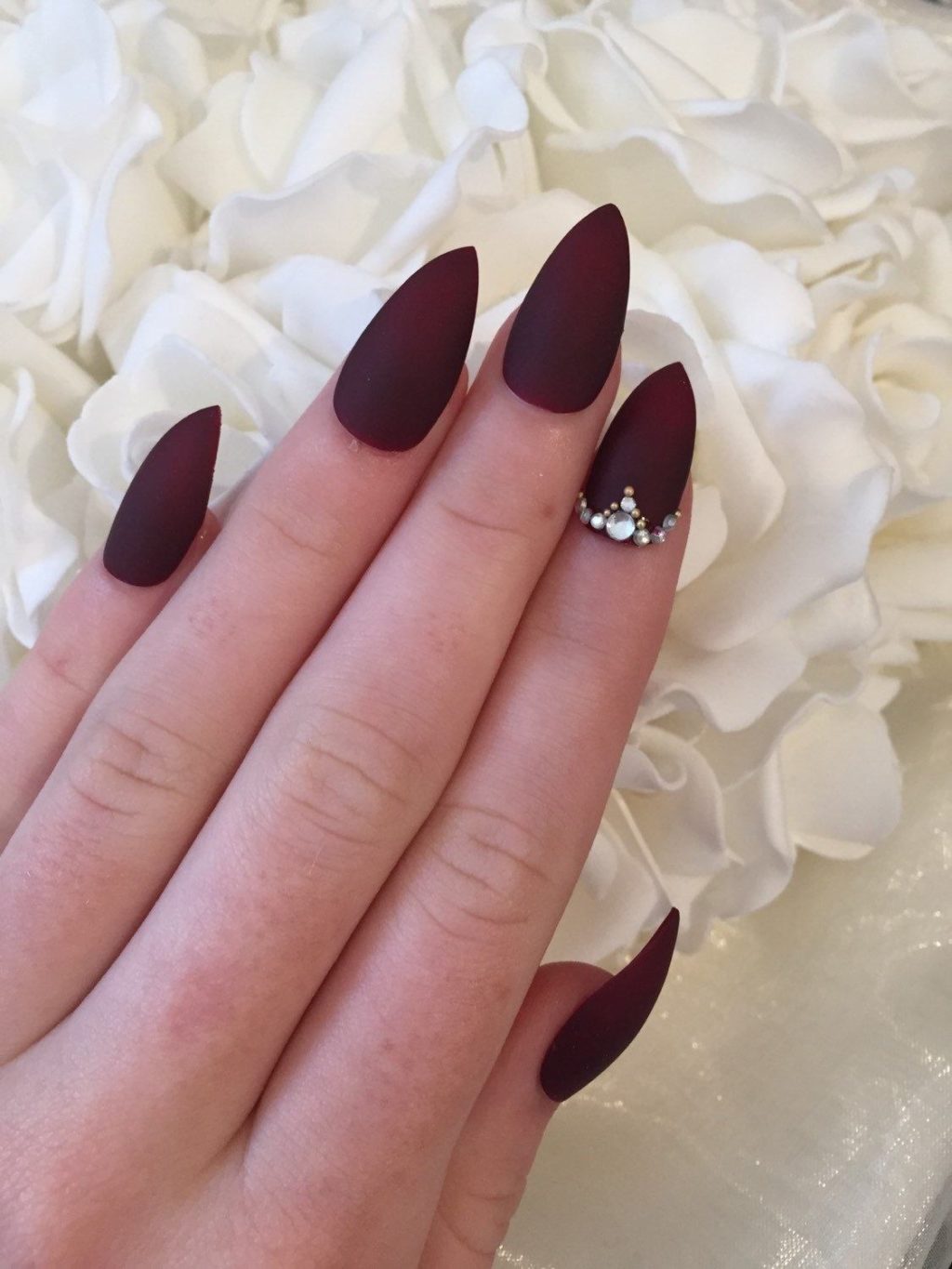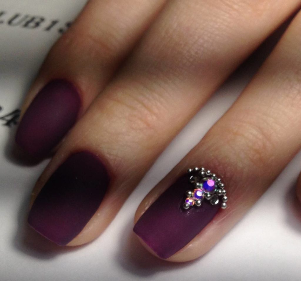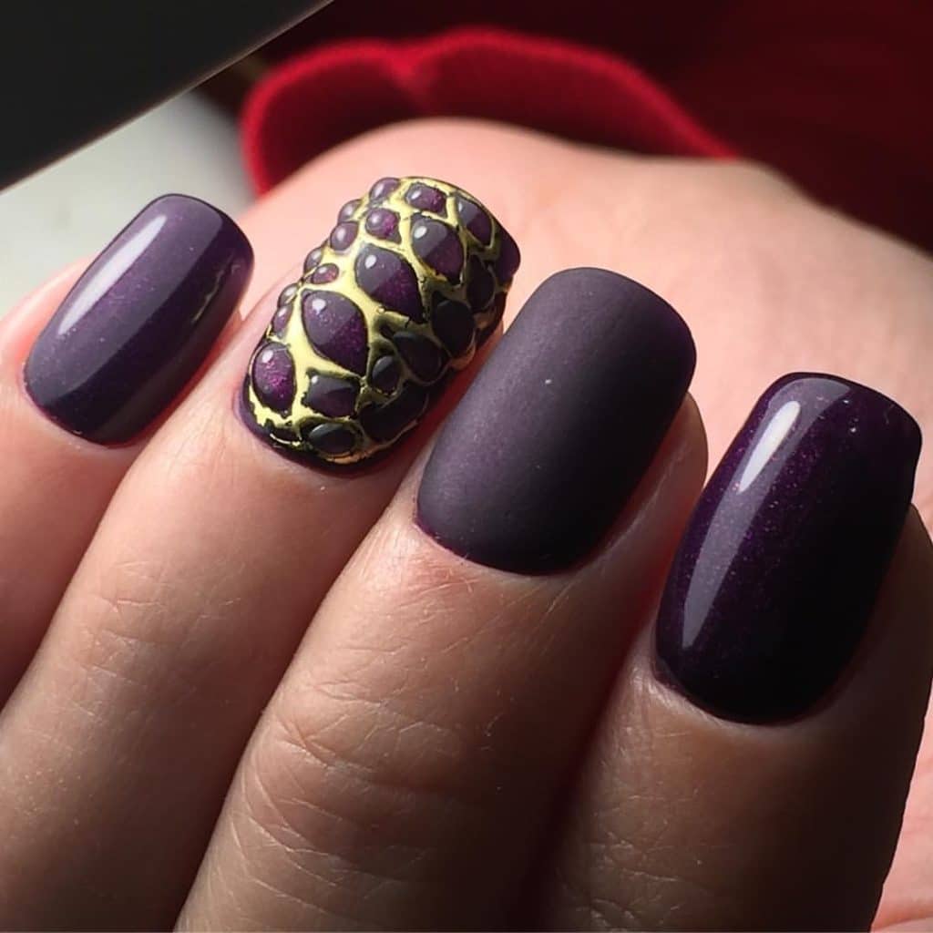 Matte manicure made in plum hue looks especially magical. Matte, velvet texture, does not allow the plum shade to lose its attractiveness. He, as it were, on the contrary, reveals it 100%.