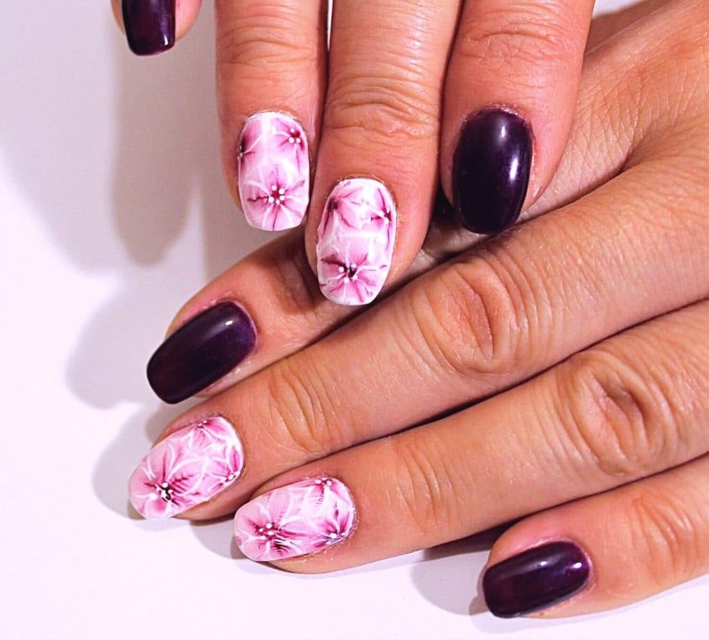 Perhaps the most popular type is plum manicure, made in a glossy finish. The gloss structure allows the plum blossom to sparkle on your nails like a diamond, which attracts many fashionistas.