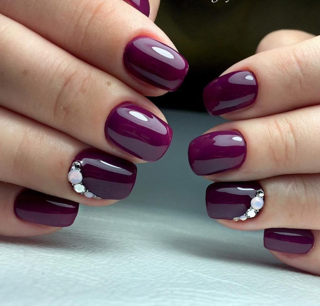 At present, there are many different manicure techniques in which the same plum shade looks different. And if you add a little decor to it, then you will get a truly real holiday manicure.