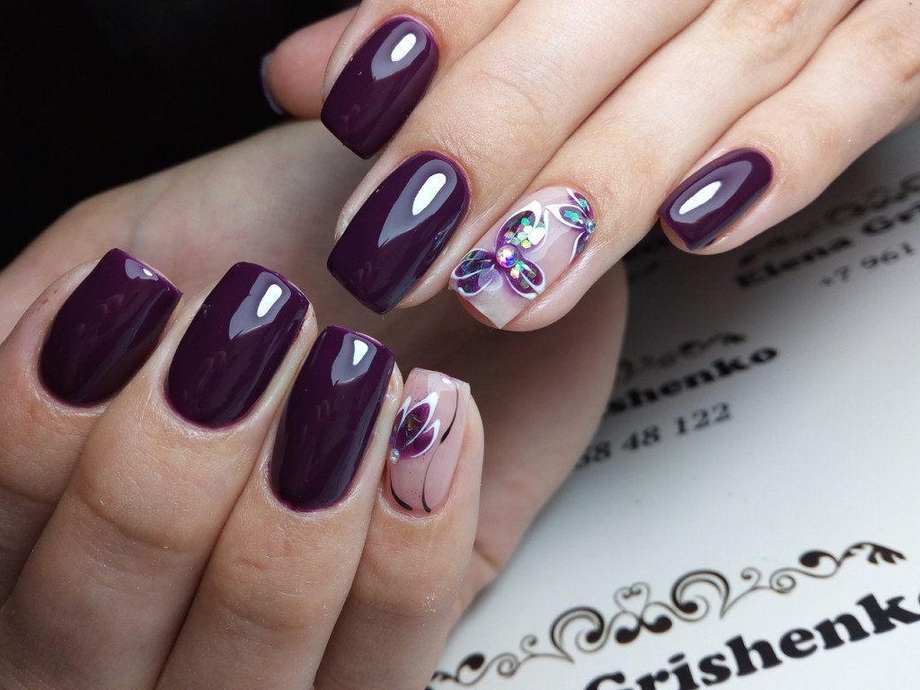 Plum manicure is one of the shades of purple. It is more saturated with burgundy pigment, but at the same time is not a burgundy color. He is a cross between them. Plum manicure has long occupied not the last place in the demand market. And its deep, saturated color expresses admiration and delight.