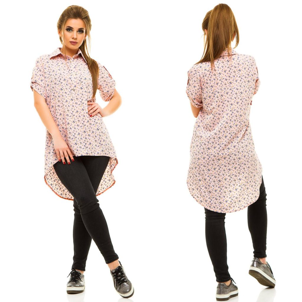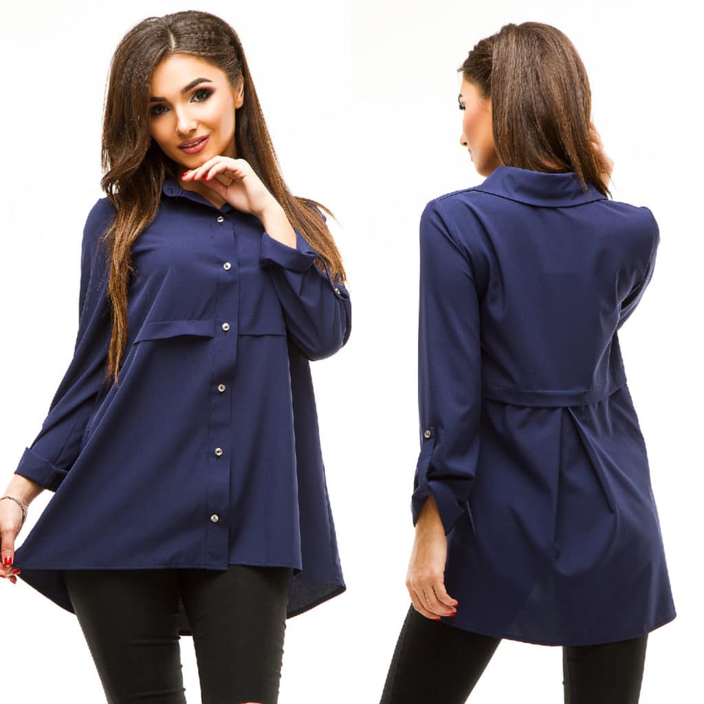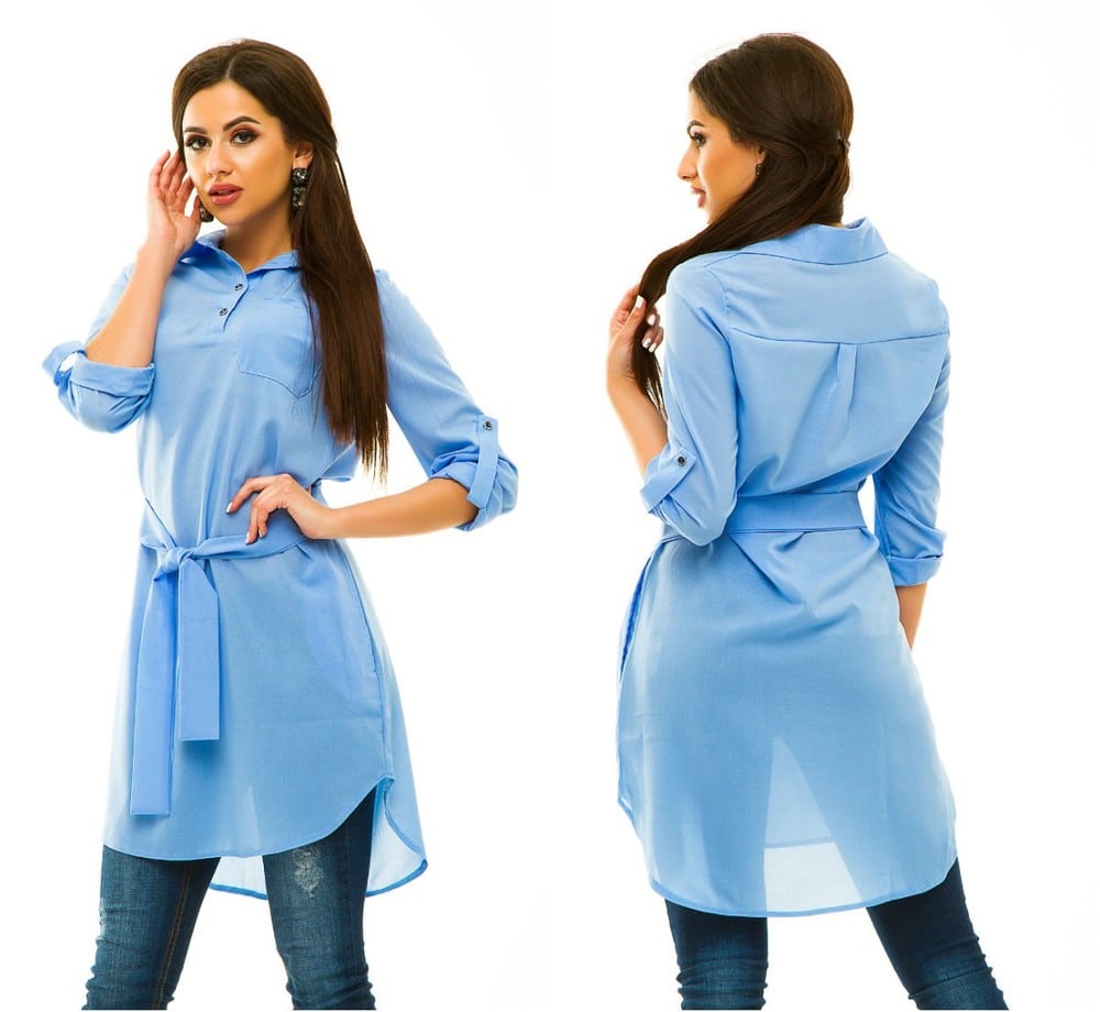 Tunic in shirt design, very popular among office style lovers. For the office - this is a plain shirt in combination with skirts and trousers. It is appropriate to put on sandals or high-heeled shoes.