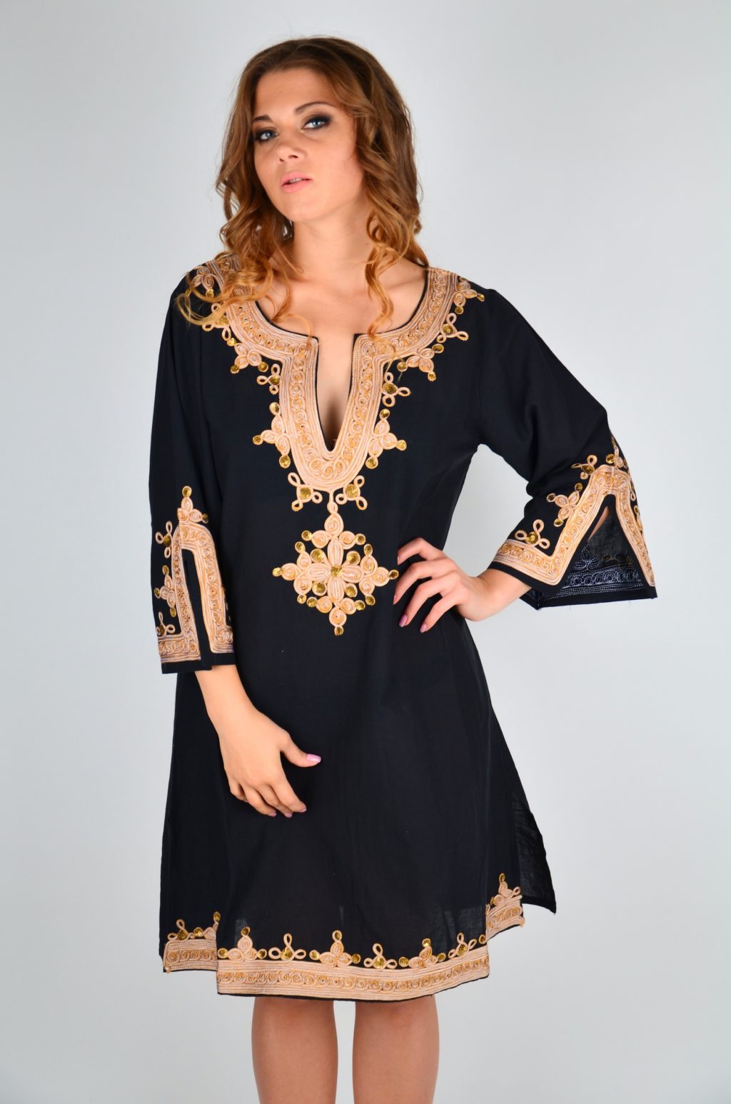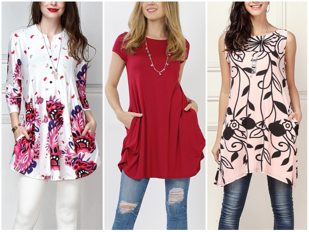 The design of the tunics is diverse; they are spacious and festive, elegant, as well as everyday style. The length of the tunic is from the middle of the thigh and below. The sleeve is short, long and 3/4 long. Solid tunics are in fashion, but multi-colored tunics are no less relevant, As well as tunics with sprint and decor. Its advantage is that it makes it possible to create many images. Combine with different clothes, both in summer and winter.