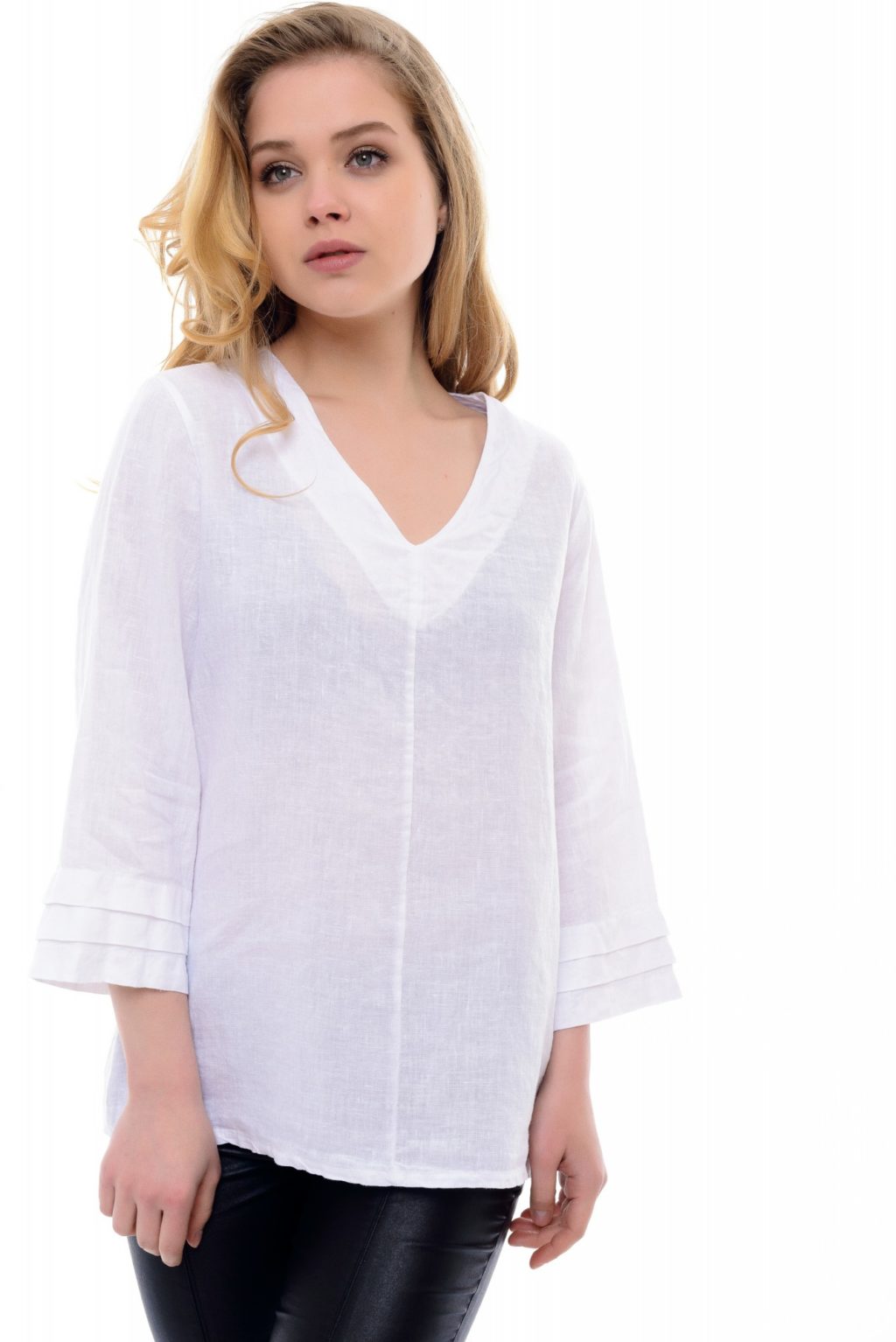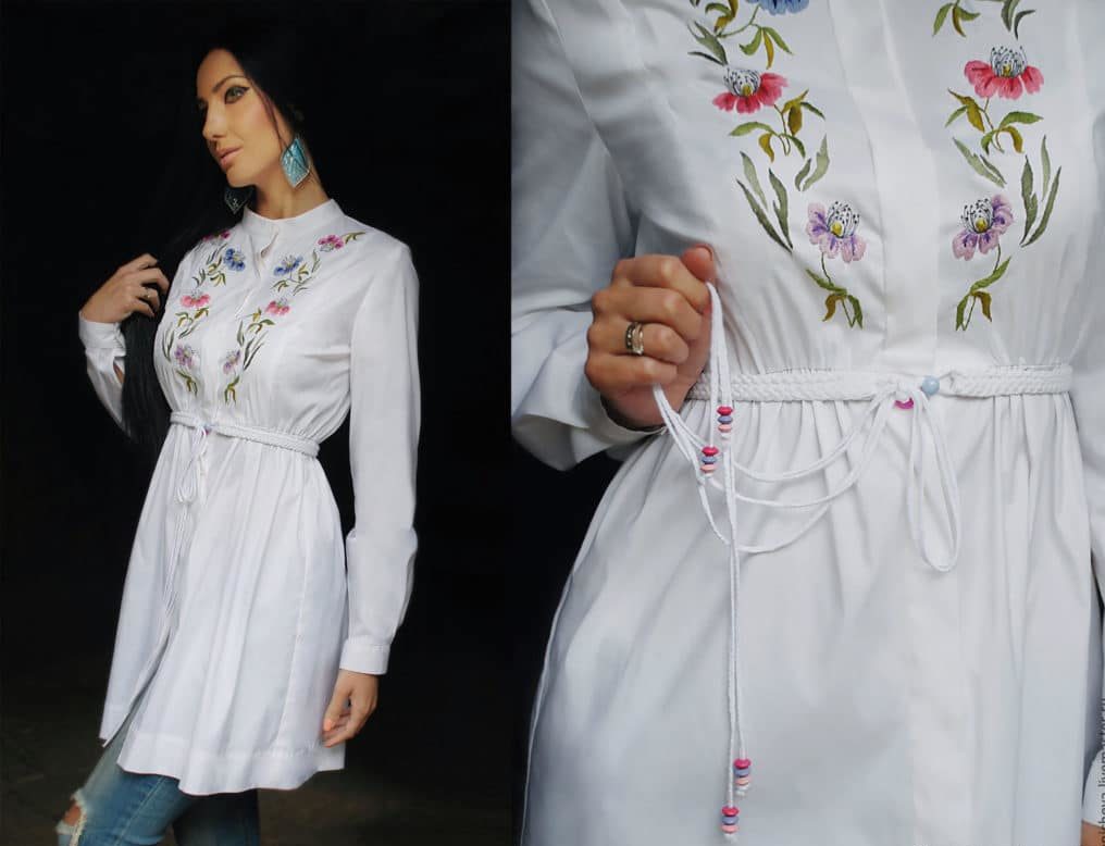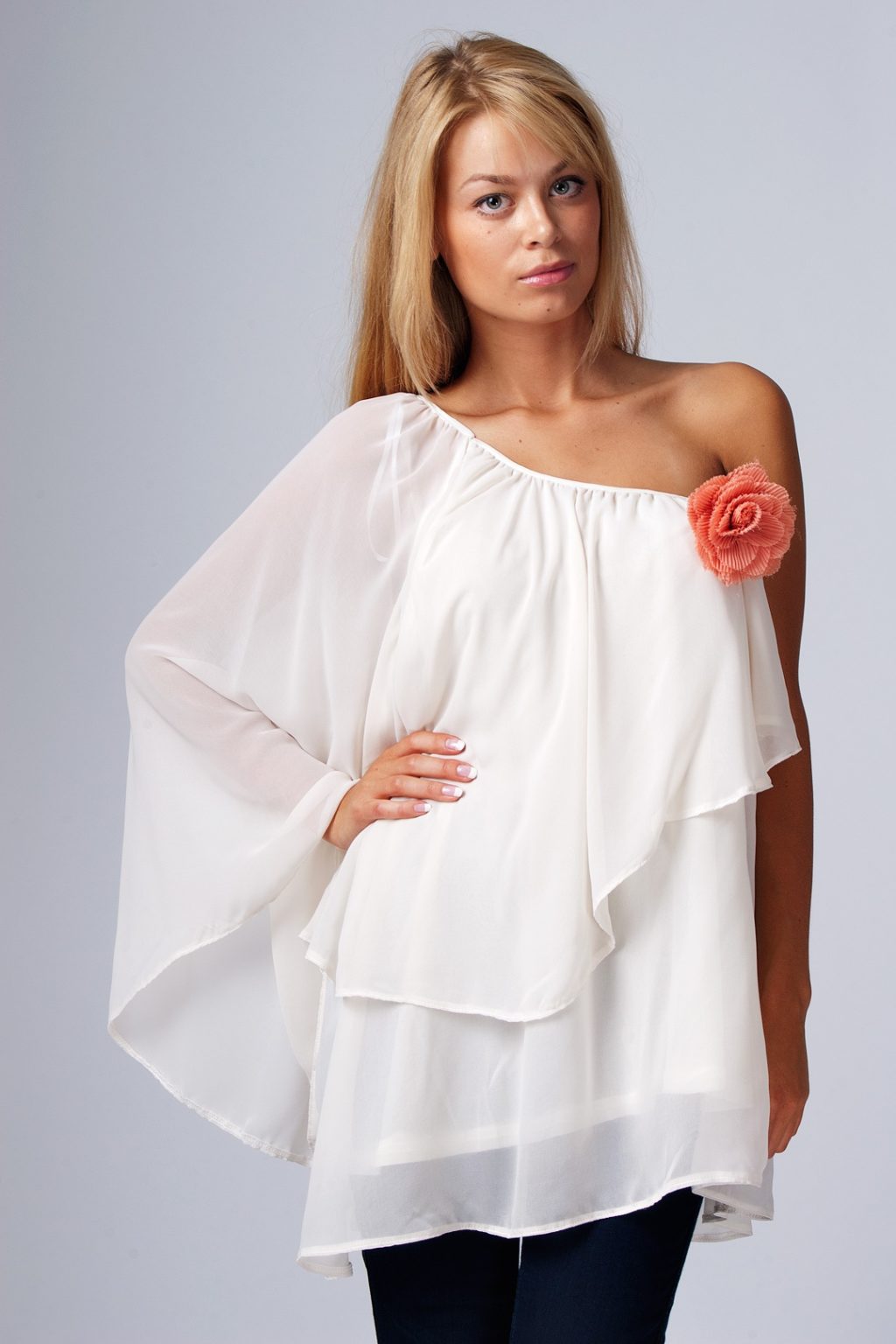 White tunic always looks spectacular. This combination of a festive at the same time comfortable style. It looks like a win, but because whatever you choose the bottom, it will look in contrast.