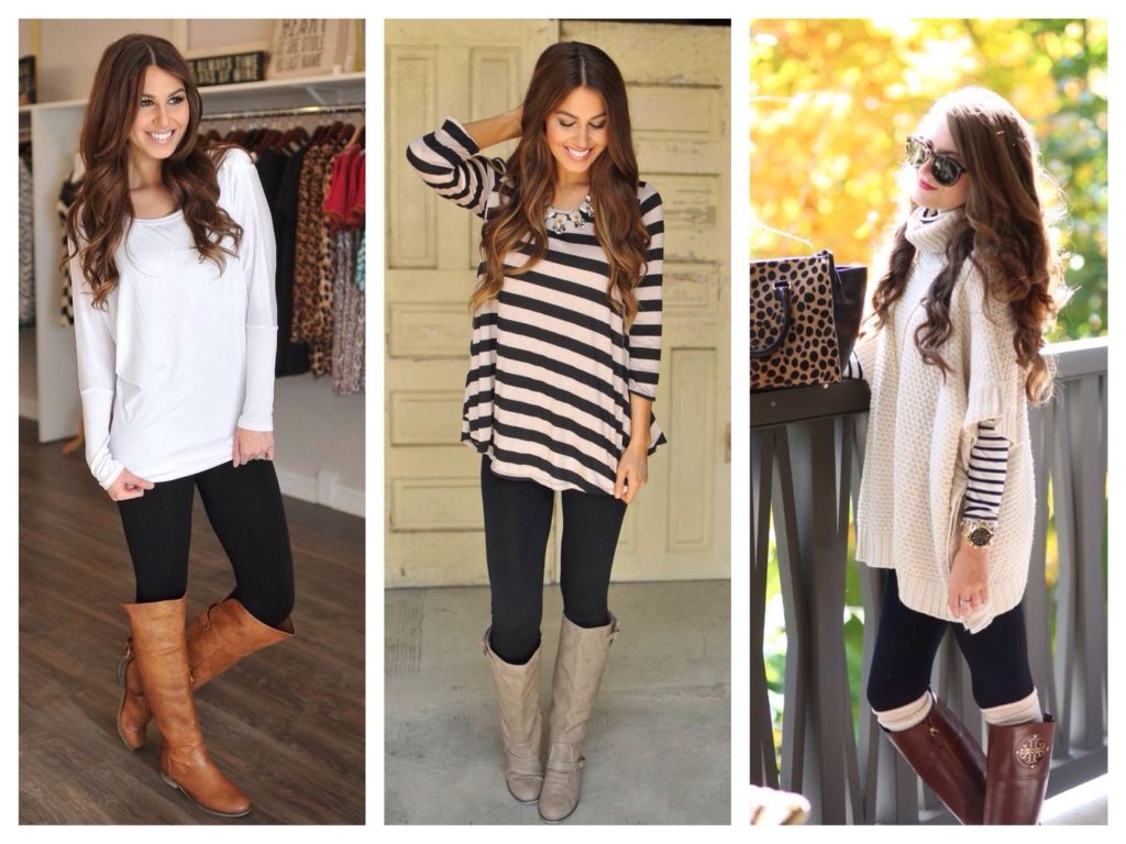 In the cold season, tunics are harmoniously combined with warm leggings, skirts.