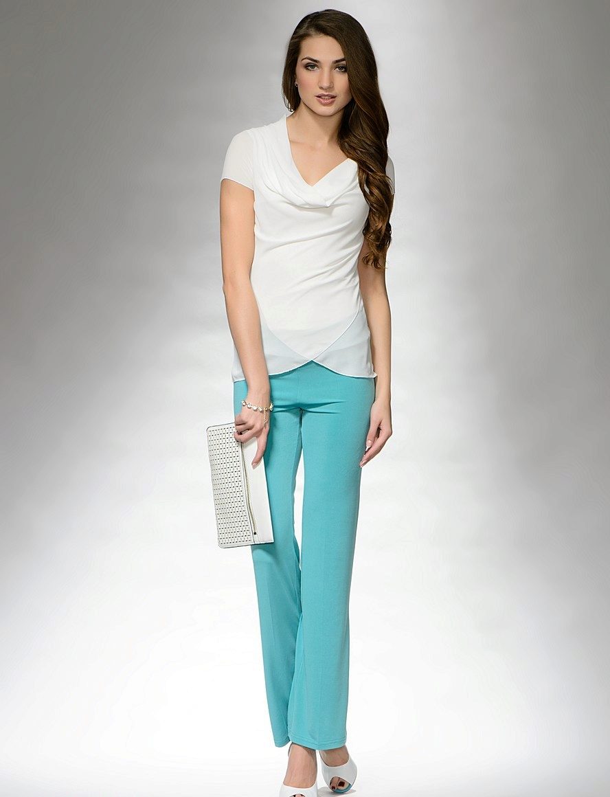 Jeans and leggings are good for a white tunic. And of course, the classic version, with black trousers, always looks perfect.