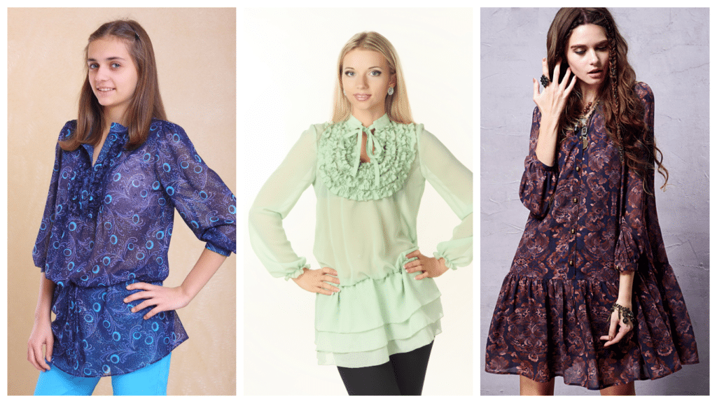 This style will perfectly emphasize your figure and hide its flaws. Girls who want to hide the flaws of the figure. Tunic "Bat" and other free styles are perfect.