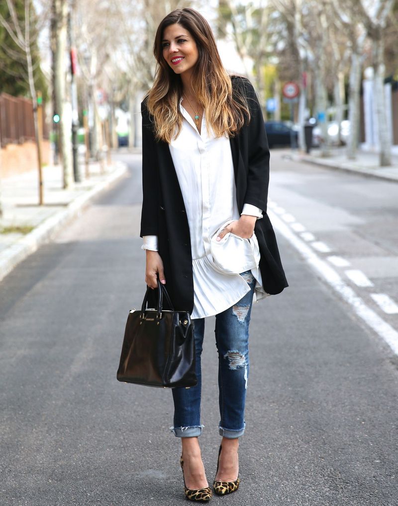 But for walking around the city this is a very suitable option. Bright tunics look interesting in combination with light jeans. This image is always elegant and sophisticated.