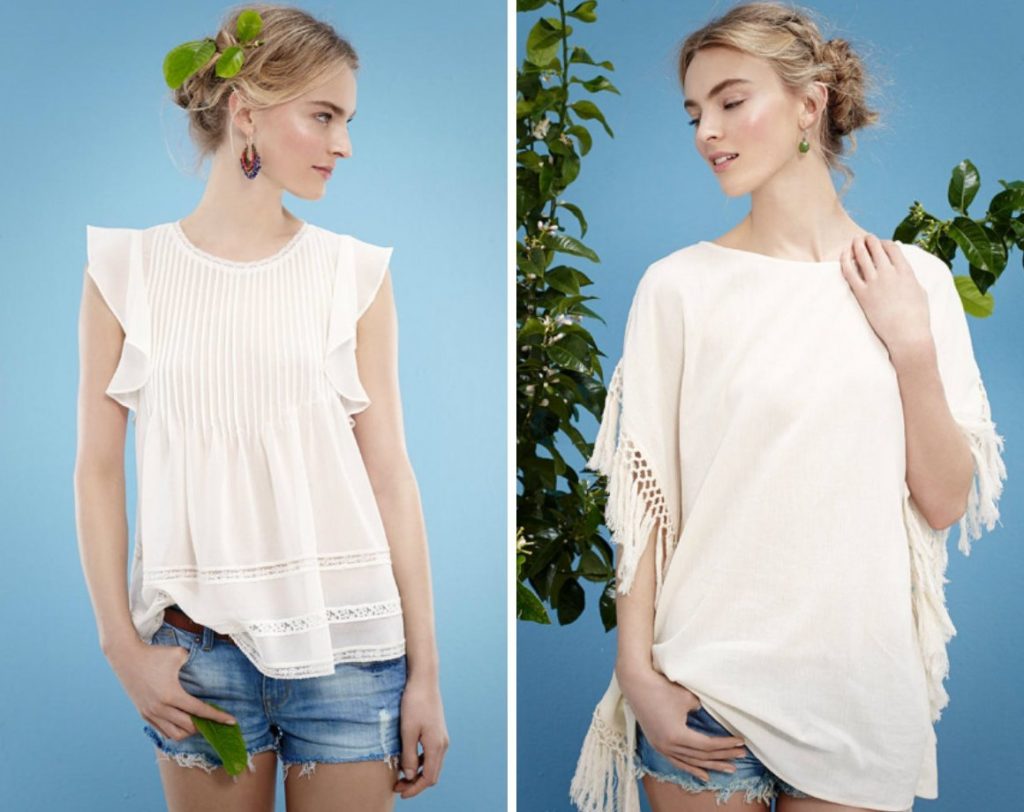 A light linen tunic of a spacious style will go well with short denim shorts. But remember, the tunic should be shorter than the shorts.