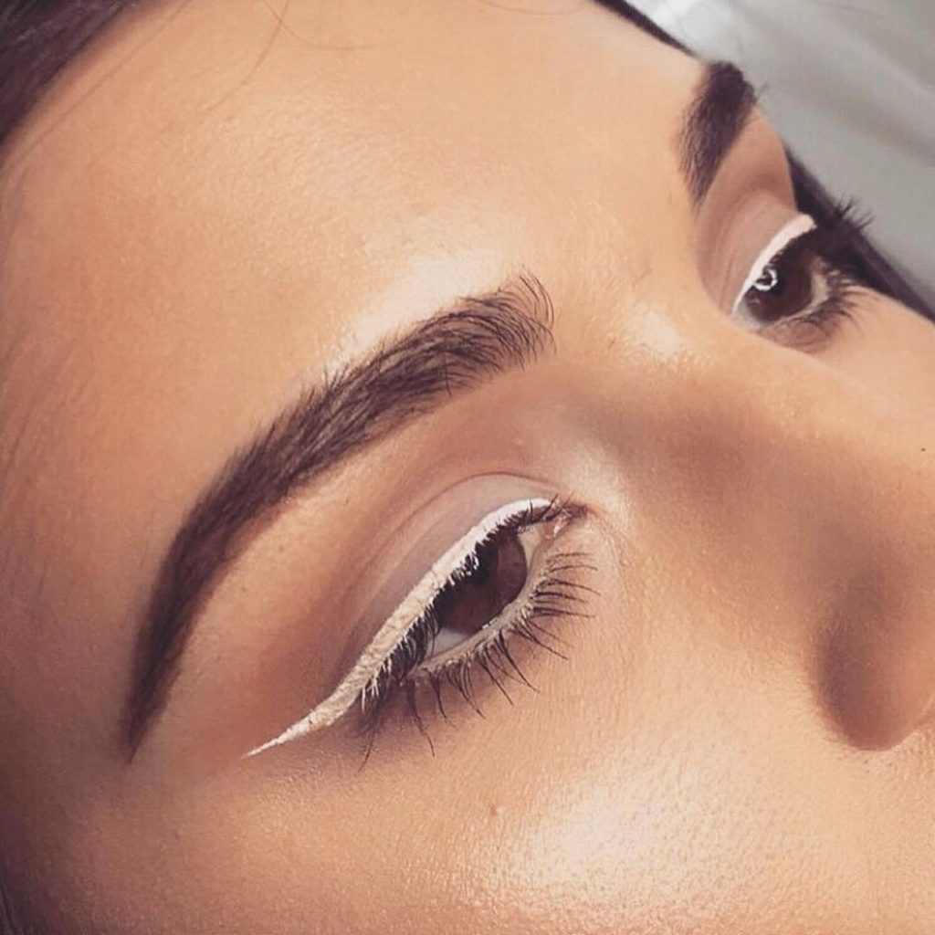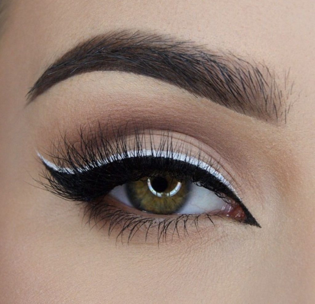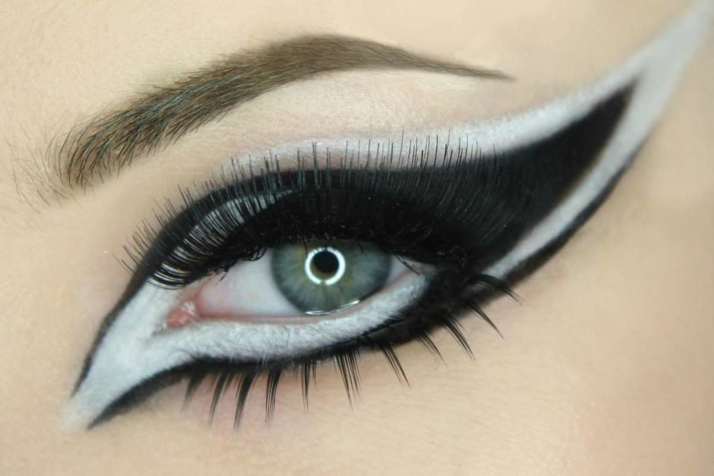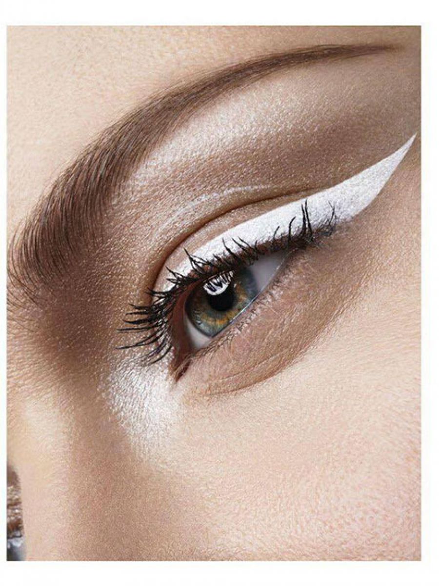 The white arrow in makeup is often used by fashionistas. It is used for everyday makeup, and for publication. So for every day an ordinary arrow is drawn from the inner corner or from the middle of the century. And for a festive event, you can come up with something unusual in the form of a double lower arrow or combine the lower and upper arrows.
