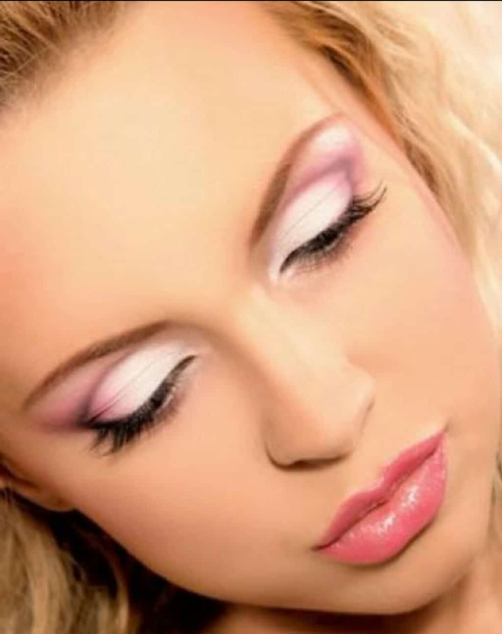 White makeup, like white in general, symbolizes purity and tenderness. Makeup in white shades will suit girls with any shade of eyes. White color can be made both basic and added as a lightening or shine.