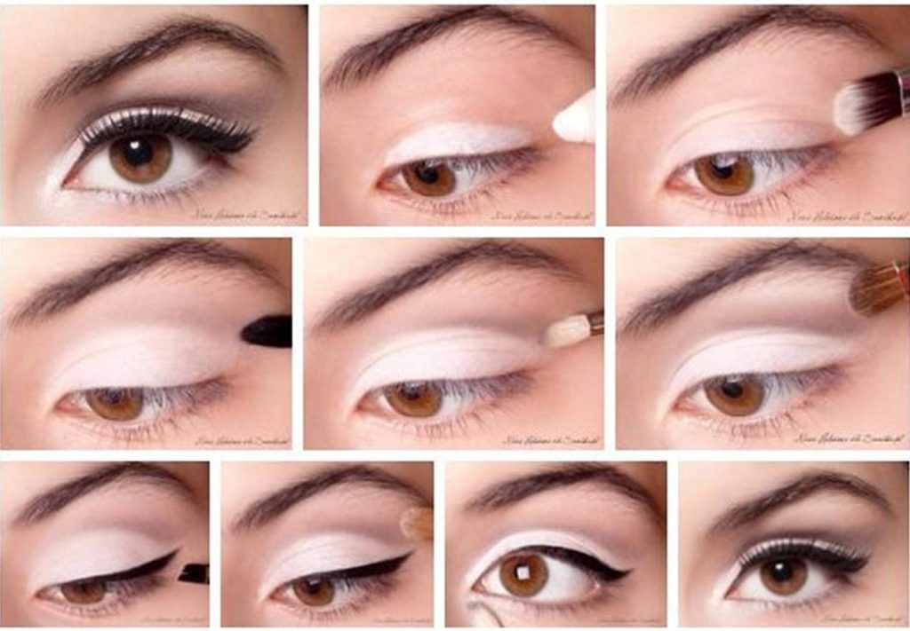 - Drawing a white pencil or eye shadow on the inner corner of the eye. This will make your look more relaxed and radiant.